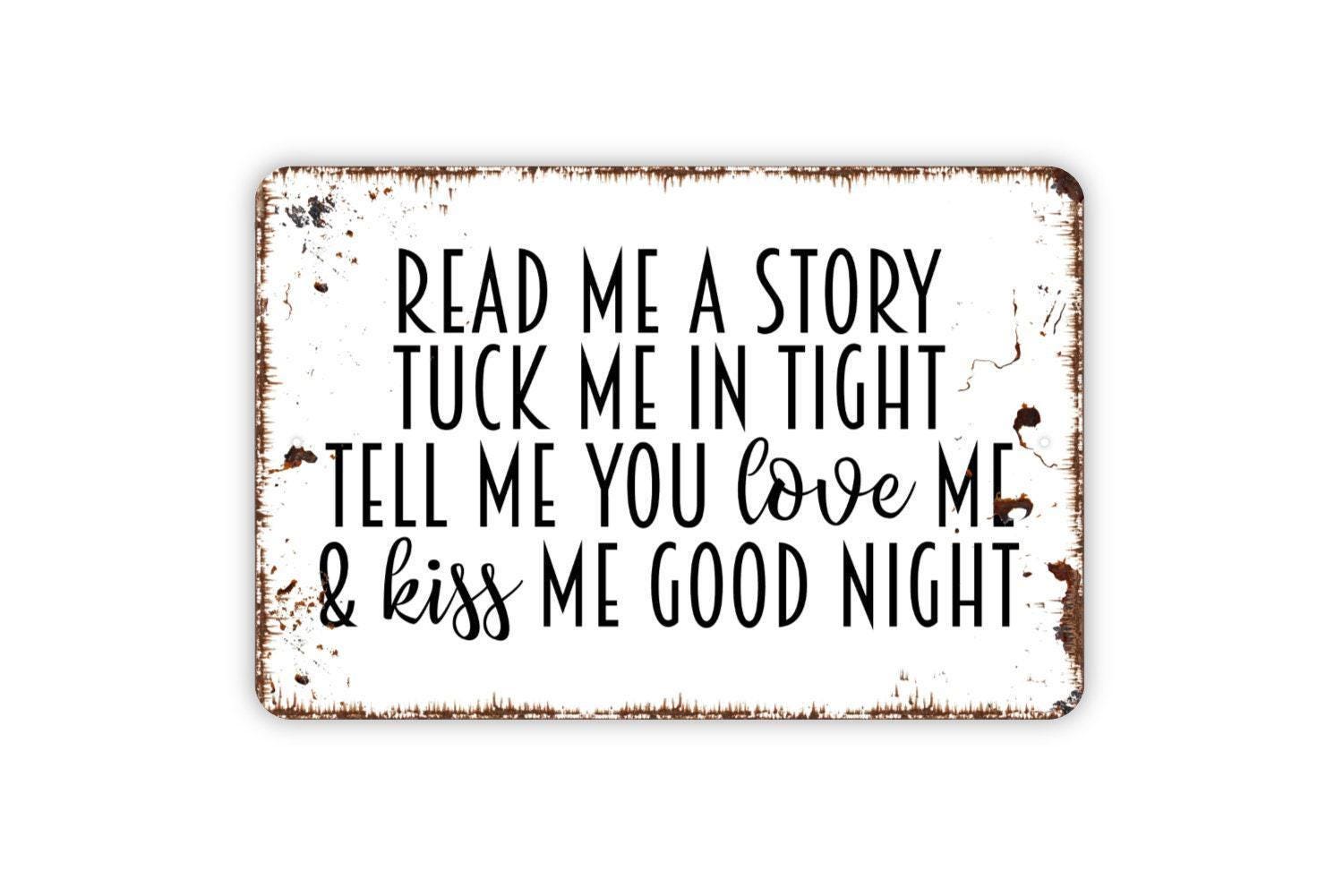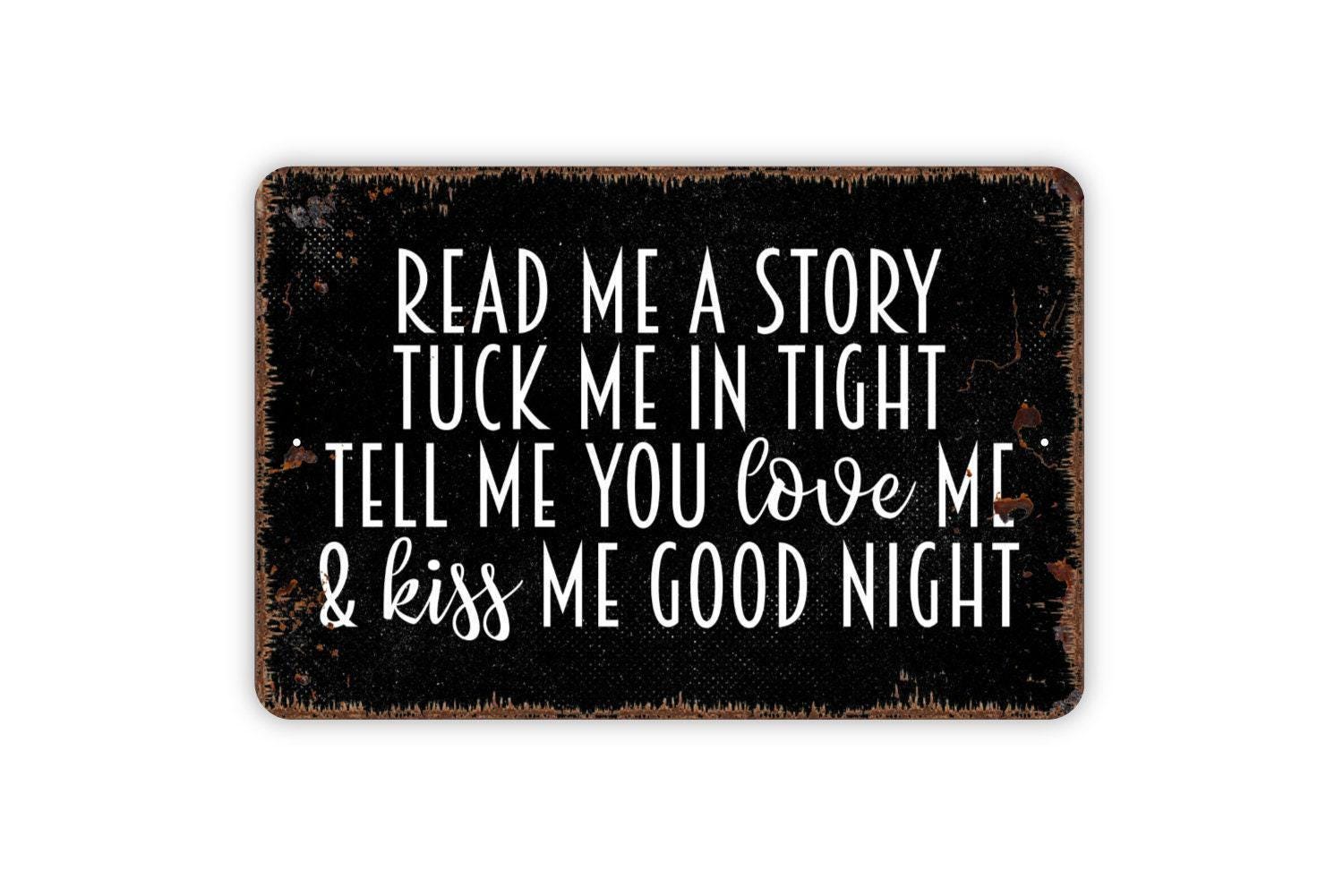Read Me A Story Tuck Me In Tight Sign - Kids Bedroom or Nursery Metal Wall Art - Indoor or Outdoor