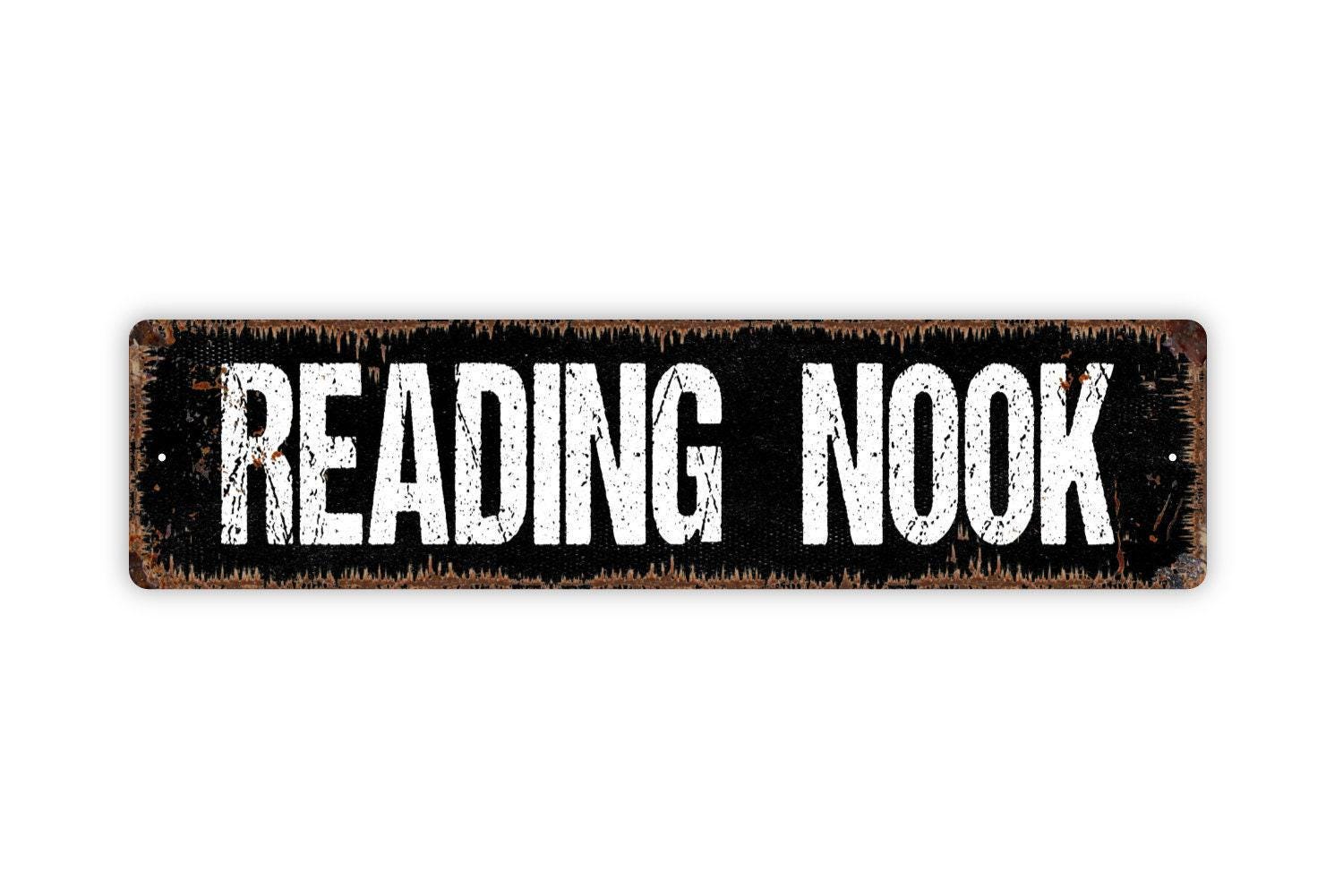 Reading Nook Sign | Rustic Book Lover Wall Decor | Farmhouse Library or Study Sign | Custom Metal Sign or Vinyl Sticker | Cozy Reading Art