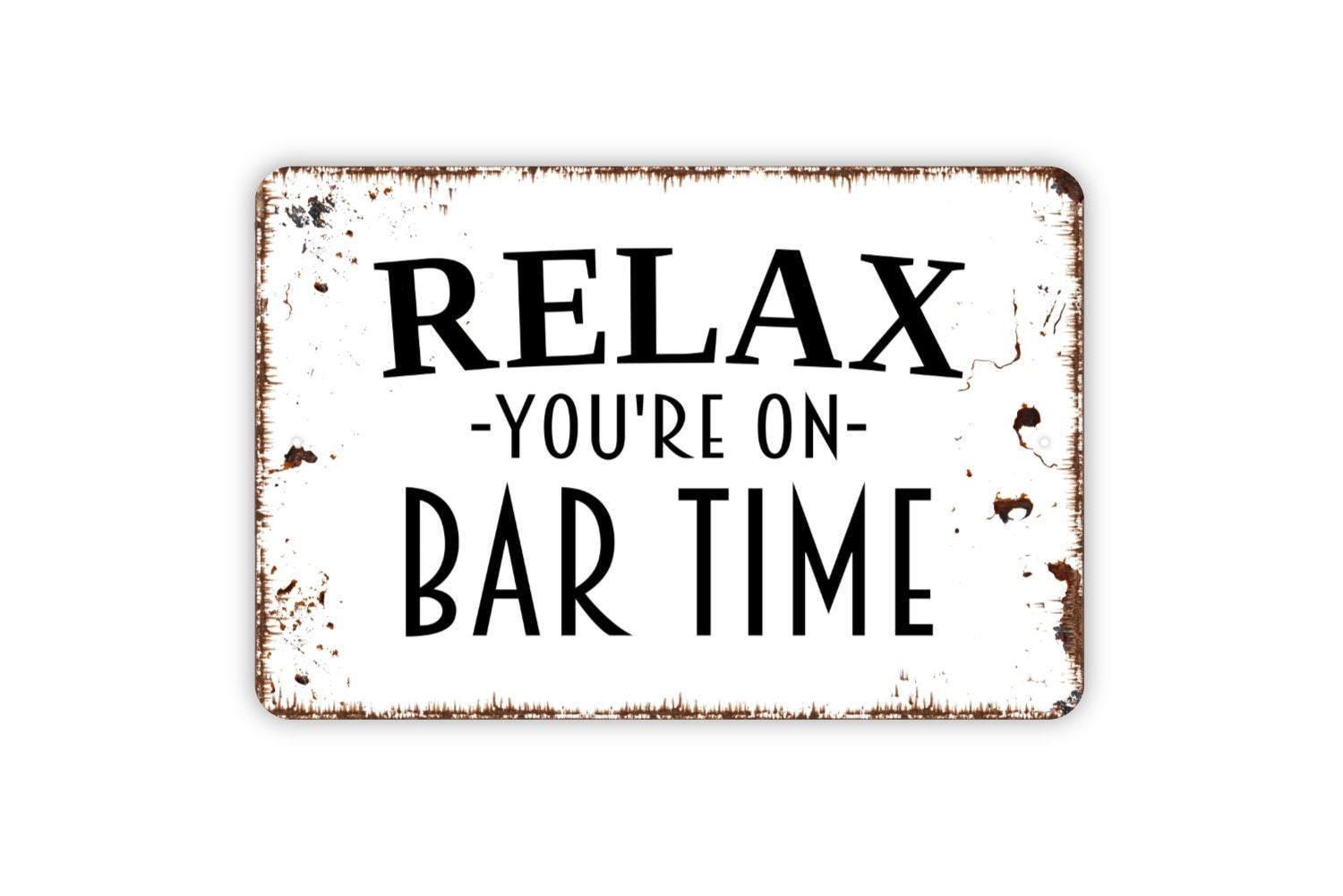Relax You’re On Bar Time Sign | Rustic Pub Wall Decor | Funny Home Bar or Man Cave Sign | Custom Metal Sign or Vinyl Sticker