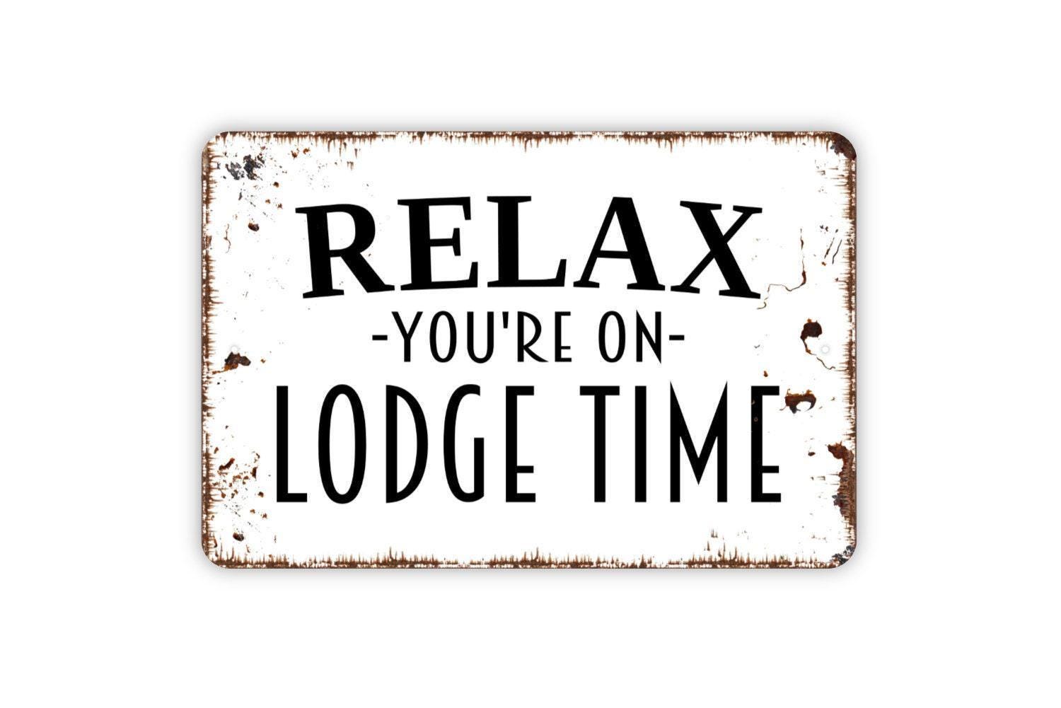 Relax You’re On Lodge Time Sign – Rustic Cabin Decor – Lodge Wall Art – Vacation Home, Man Cave or Lake House Metal Sign or Vinyl Sticker