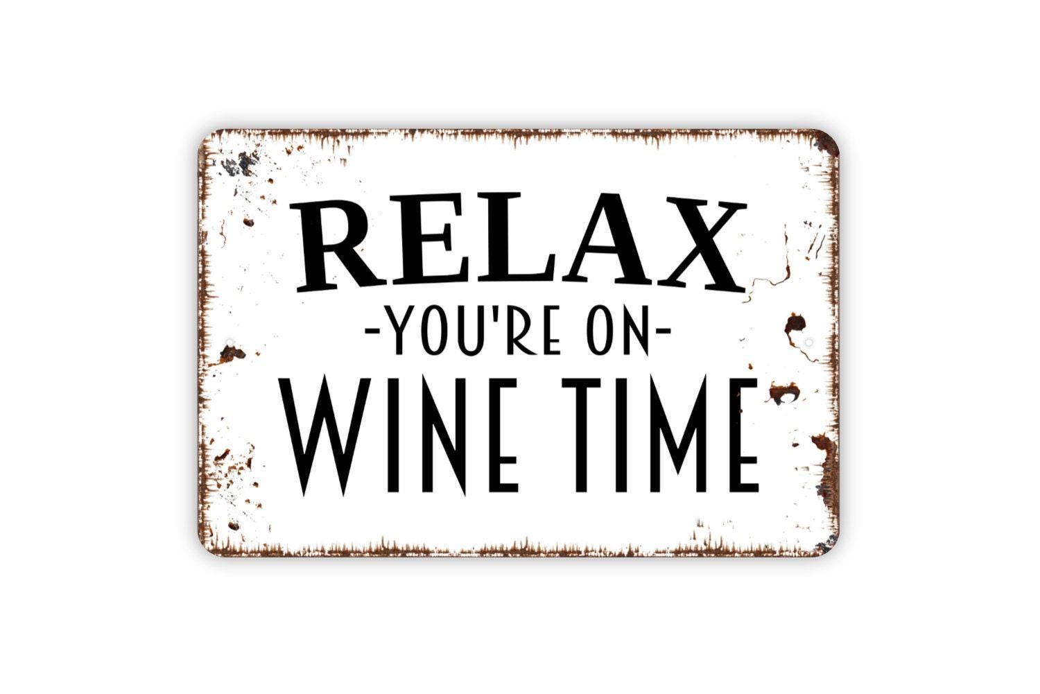 Relax You’re On Wine Time Sign Metal or Vinyl Sticker | Funny Wine Lover Wall Art | Rustic Kitchen Bar Sign | Farmhouse Home Decor Gift