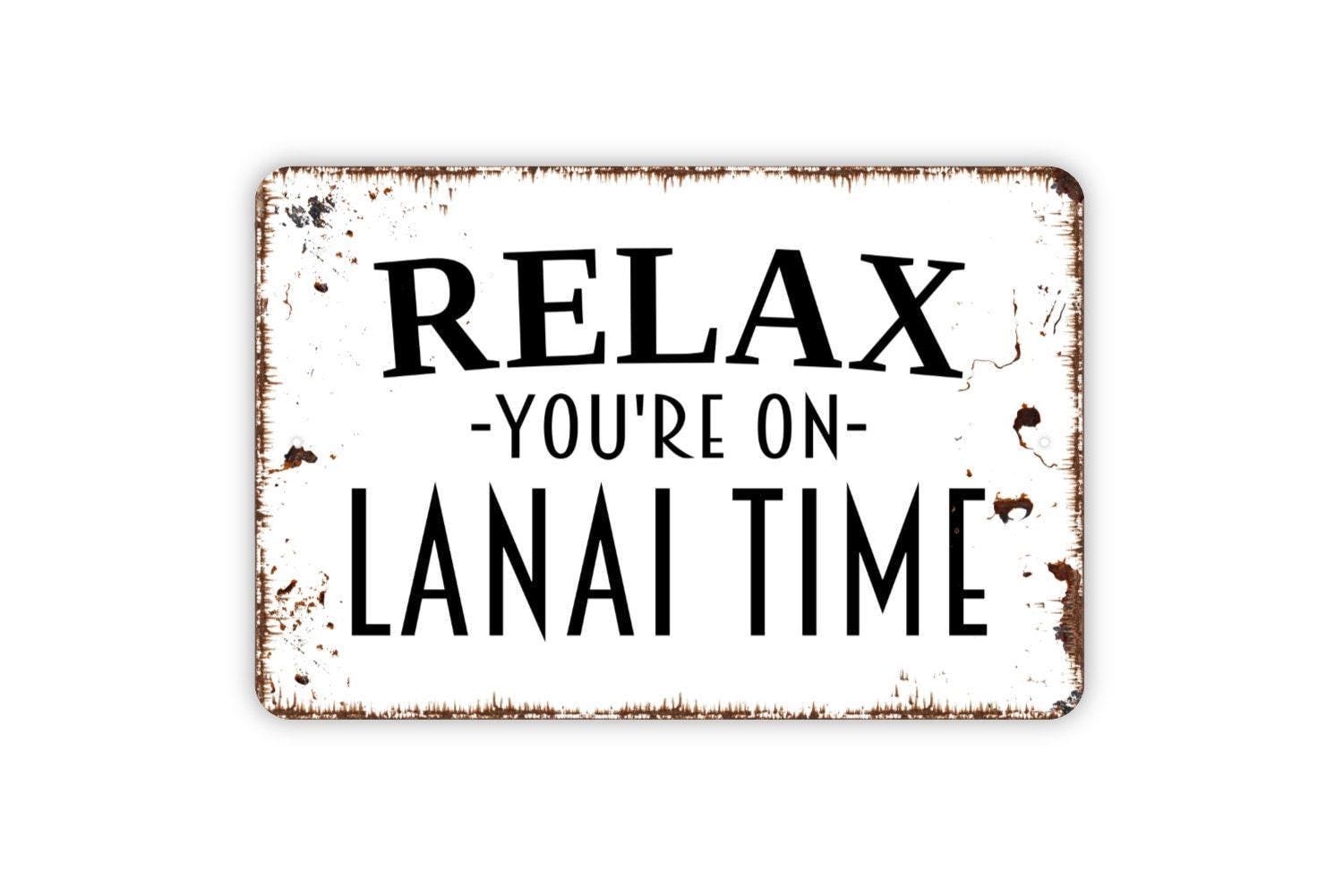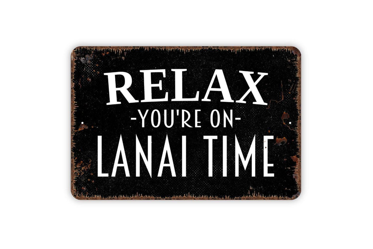 Relax You're On Lanai Time Sign, Metal Sign, Farmhouse Contemporary Modern Wall Metal Sign