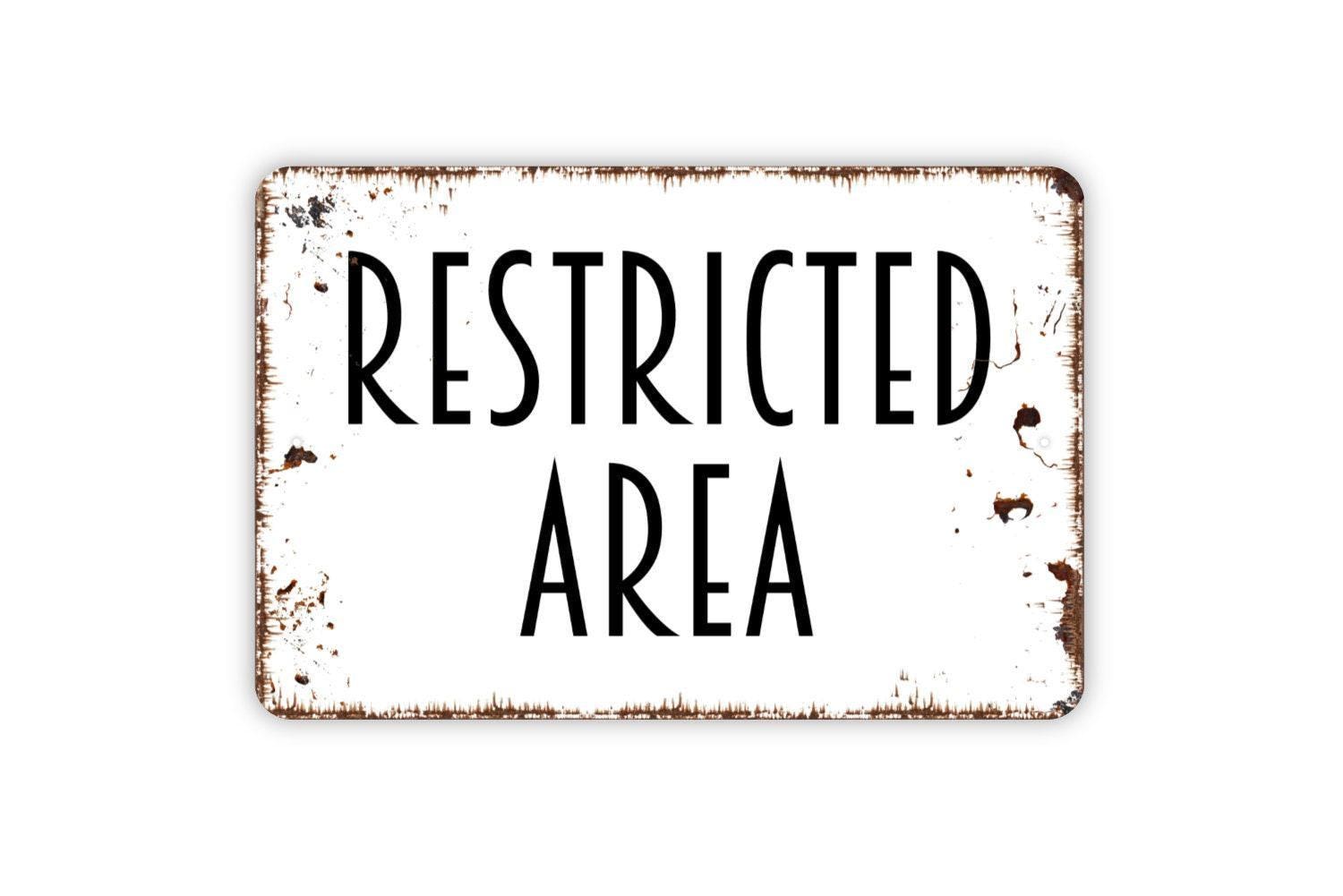 Restricted Area Sign | Safety Warning Private Property Decor | Metal Sign or Vinyl Sticker for Workplace Fence Gate Door