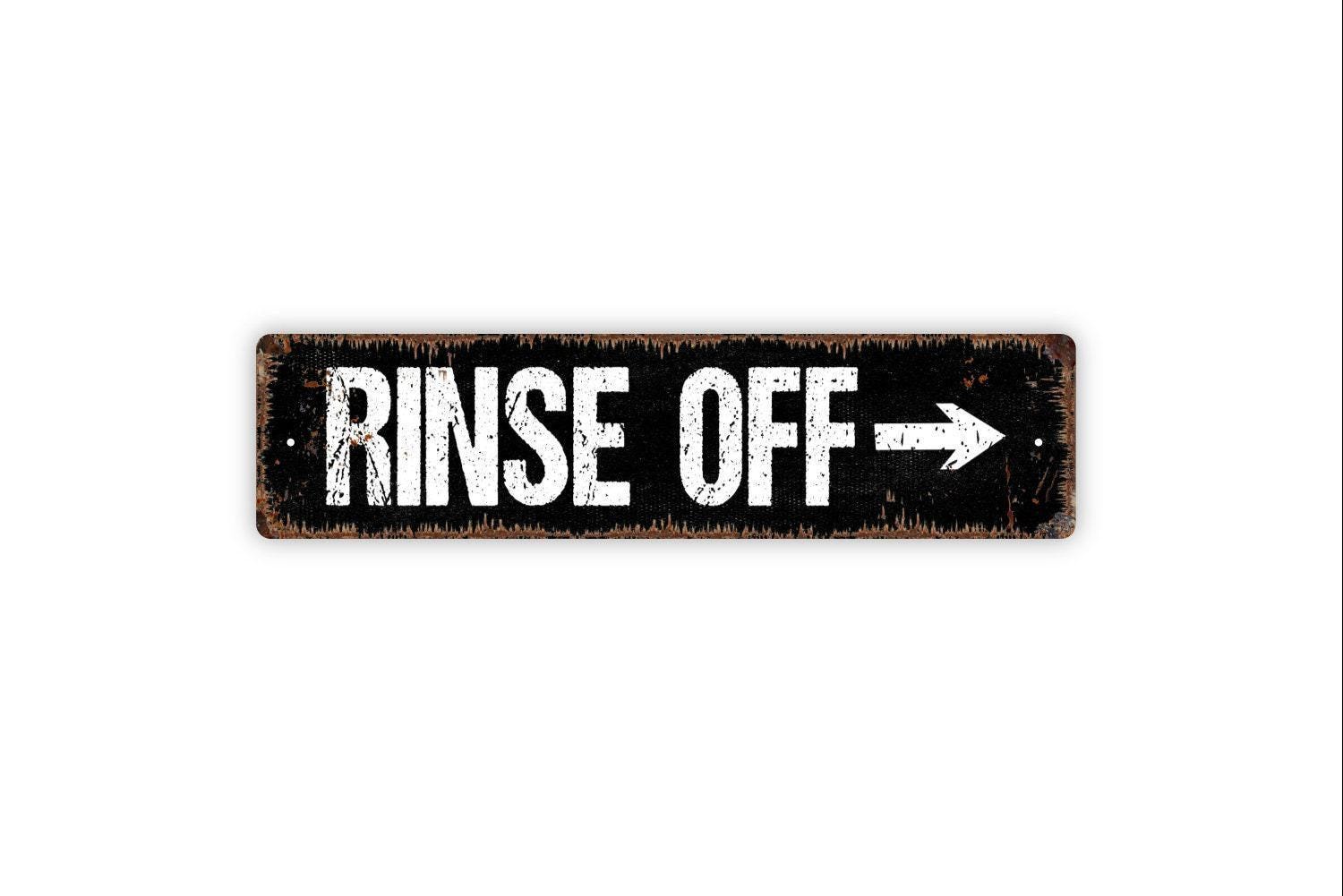 Rinse Off With Arrow Sign - Vinyl Sticker Or Metal Street Sign or Door Name Plate Plaque