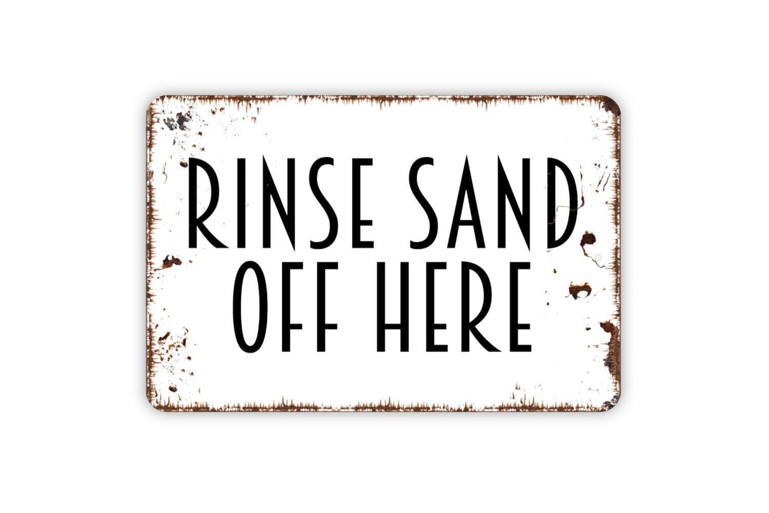 Rinse Sand Off Here Sign - Beach Sand Swimming Pool Hot Tub Spa Metal Indoor or Outdoor Wall Art