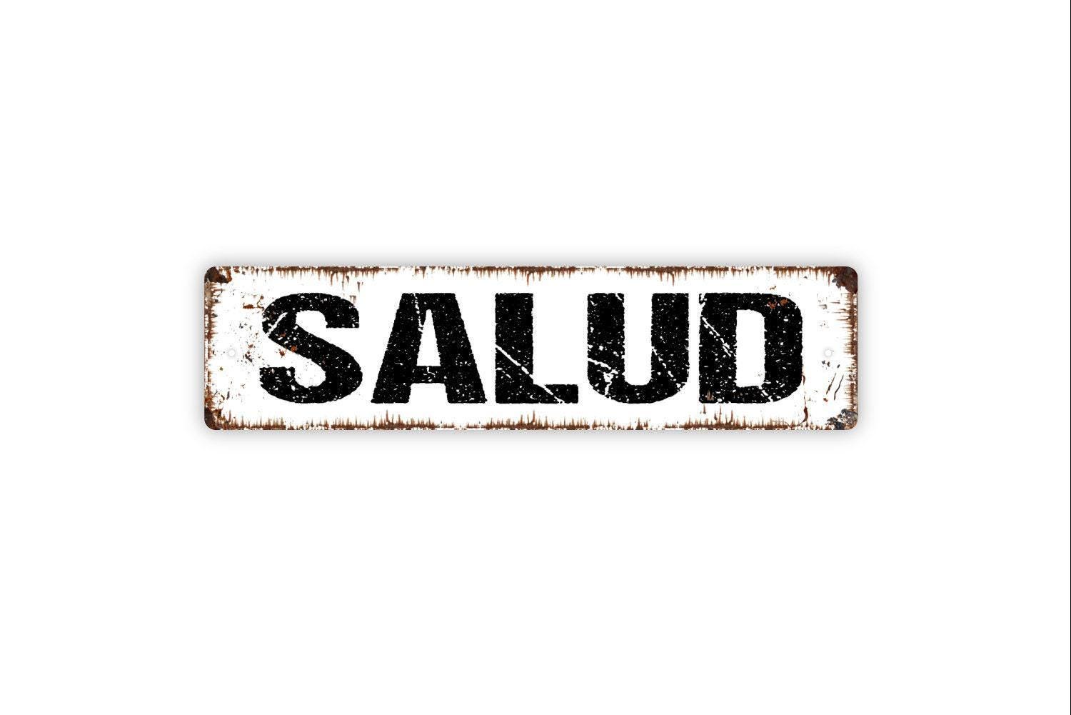 Salud Sign - Cheers Expressing Good Wishes Drink Toast Vinyl Sticker Or Street Metal Sign or Door Name Plate Plaque