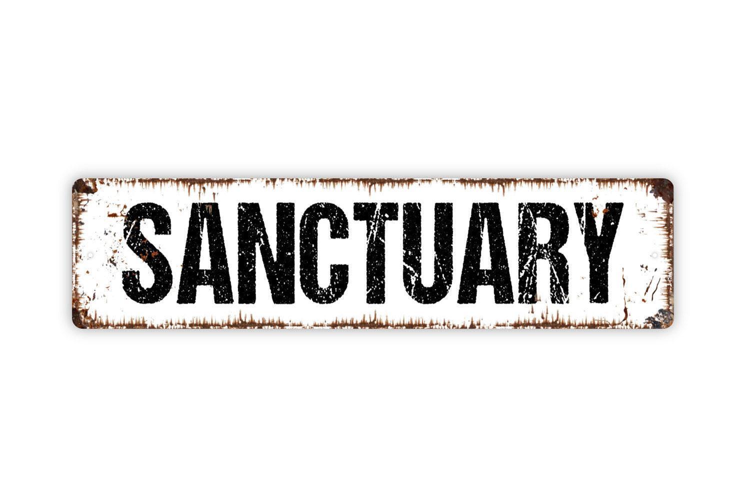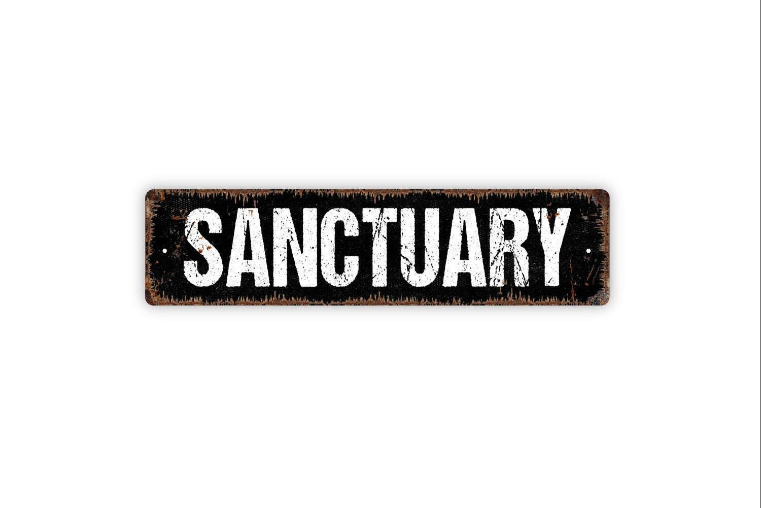 Sanctuary Sign - Vinyl Sticker Or Metal Street Sign or Door Name Plate Plaque