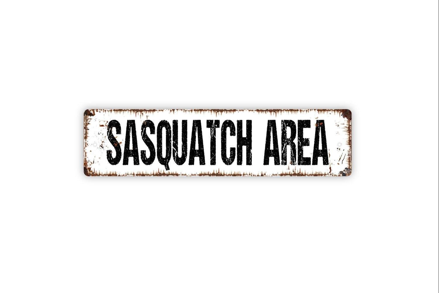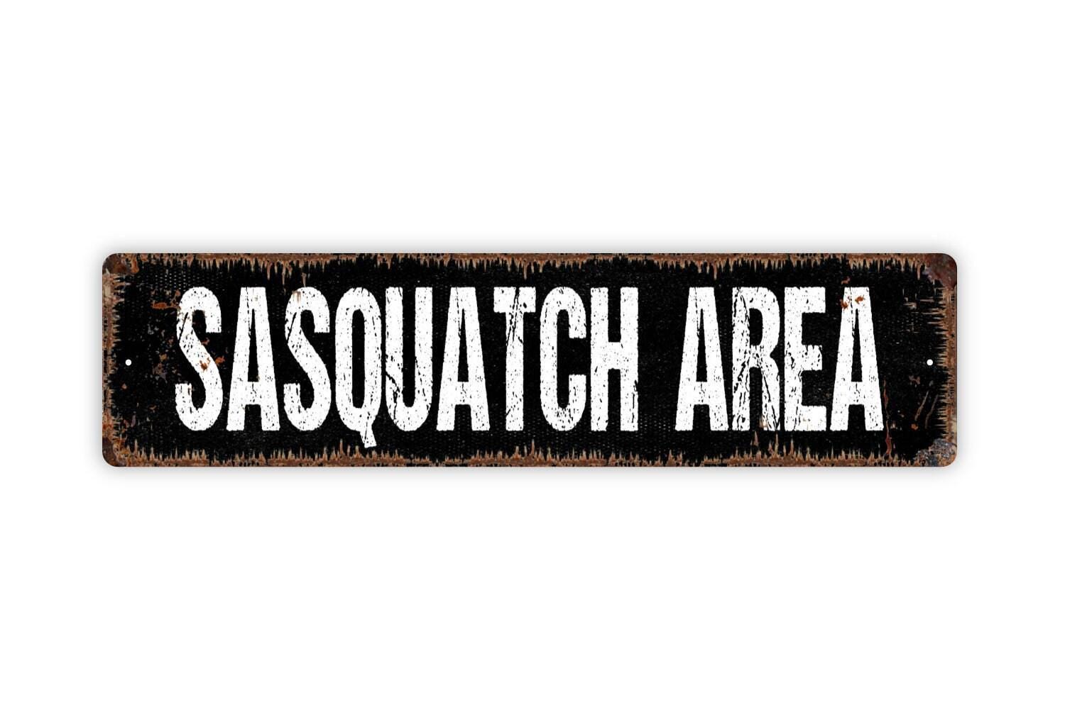 Sasquatch Area Sign - Bigfoot Big Foot Crossing Beware Warning Funny Vinyl Sticker Or Street Metal Sign or Door Name Plate Plaque
