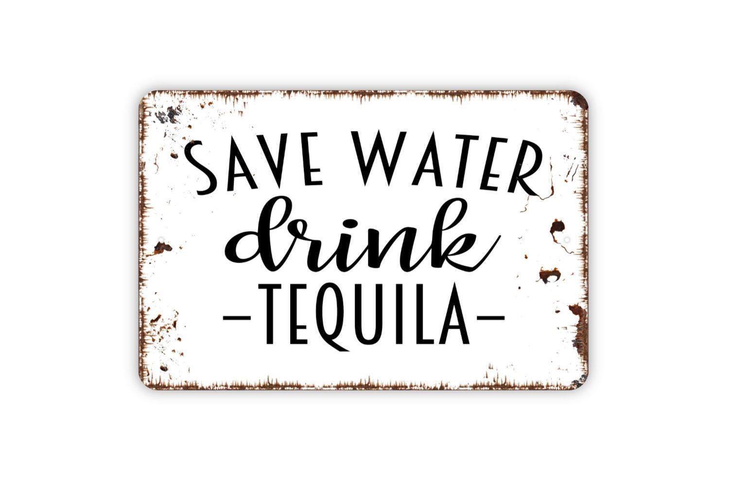 Save Water Drink Tequila Sign | Funny Bar Drinking Wall Decor | Metal Sign or Vinyl Sticker for Kitchen Patio Pub Cantina