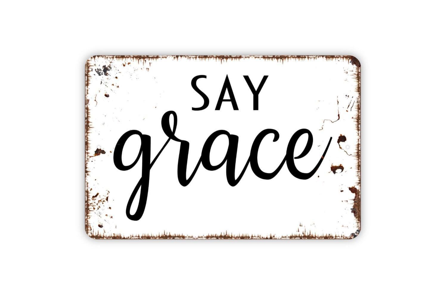 Say Grace Sign - Pray Give Thanks Prayer Metal Sign Modern Wall Art