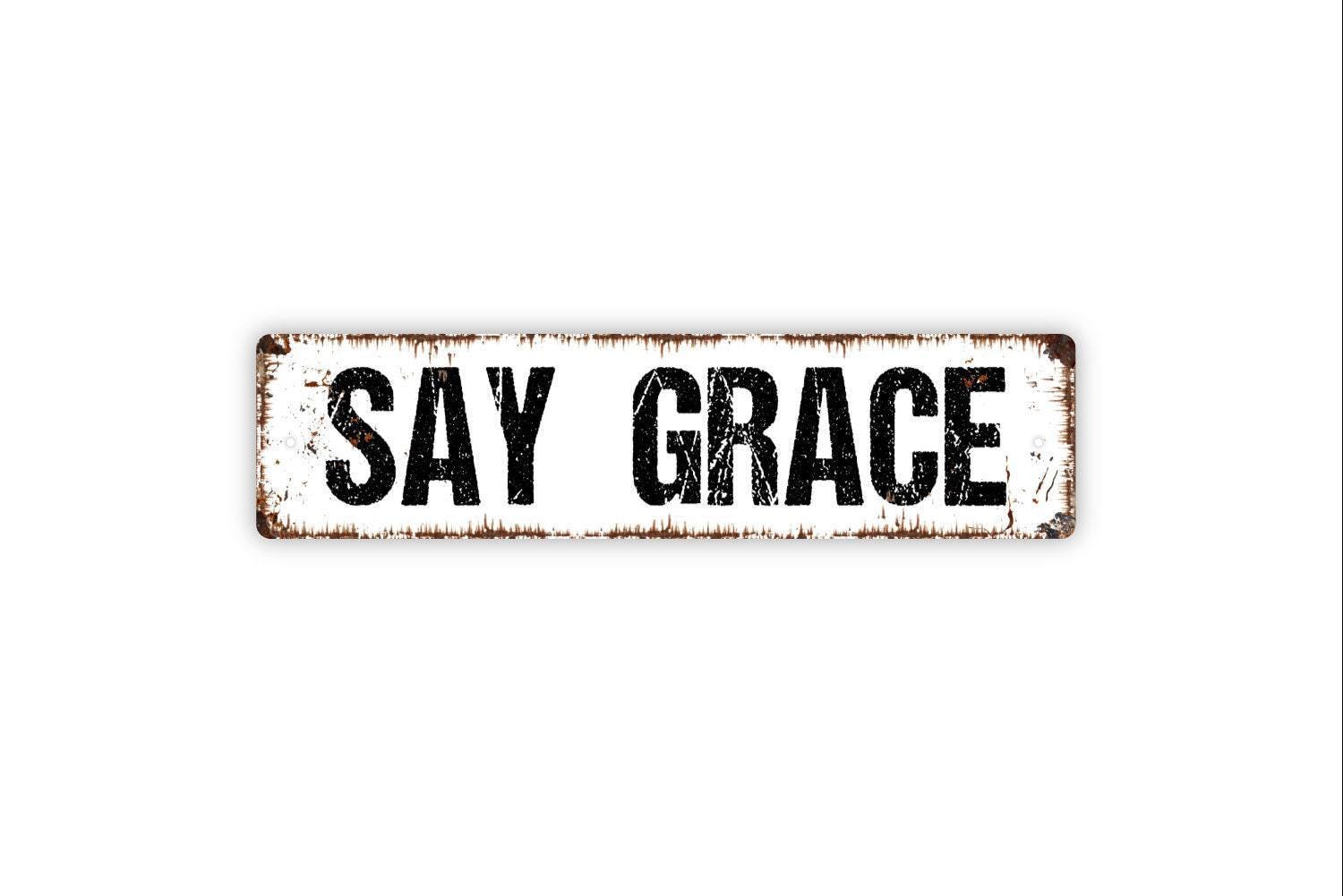 Say Grace Sign - Prayer Christian Verse Pray Dinner Table Bedtime Vinyl Sticker Or Street Metal Sign or Door Name Plate Plaque