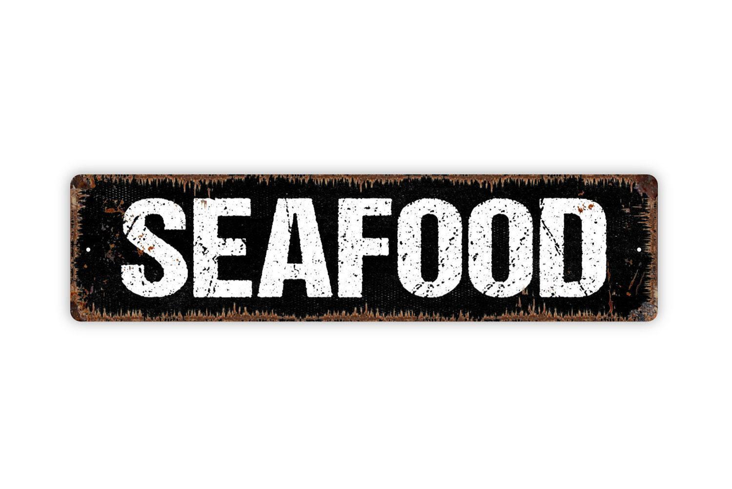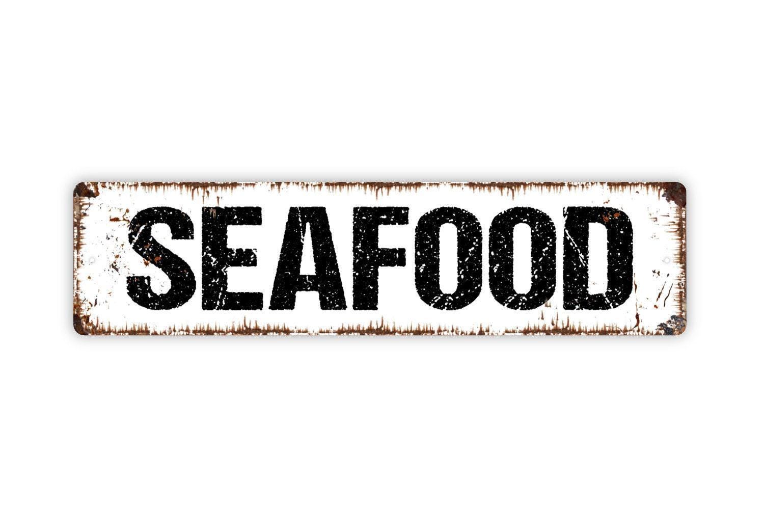 Seafood Sign - Fresh Fish Shrimp Lobster Crab Oysters Kitchen Cafe Vinyl Sticker Or Street Metal Sign or Door Name Plate Plaque