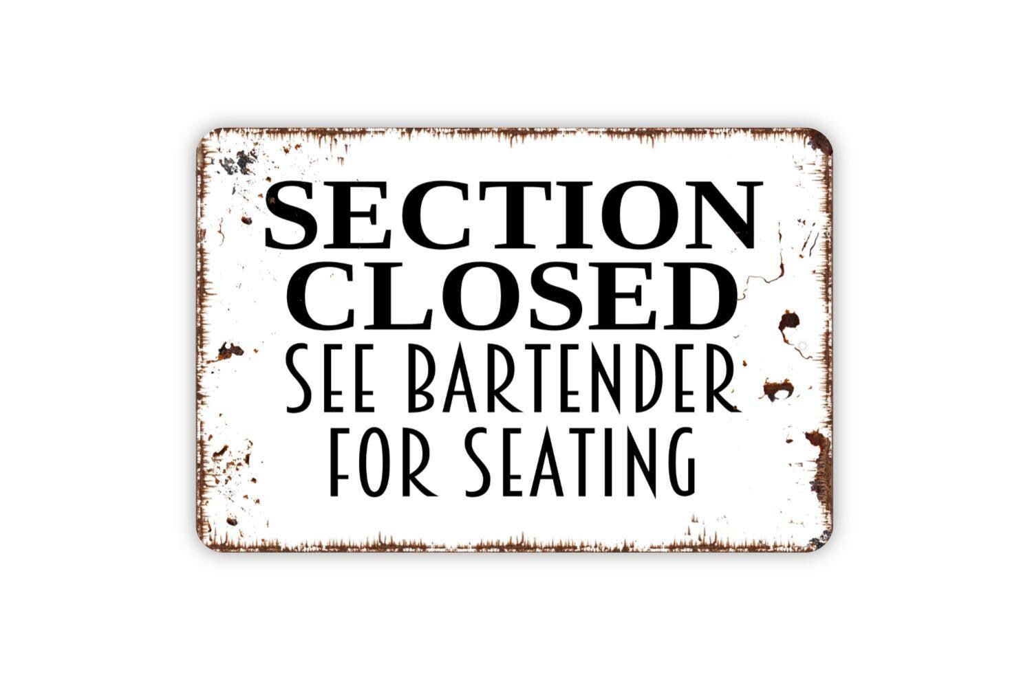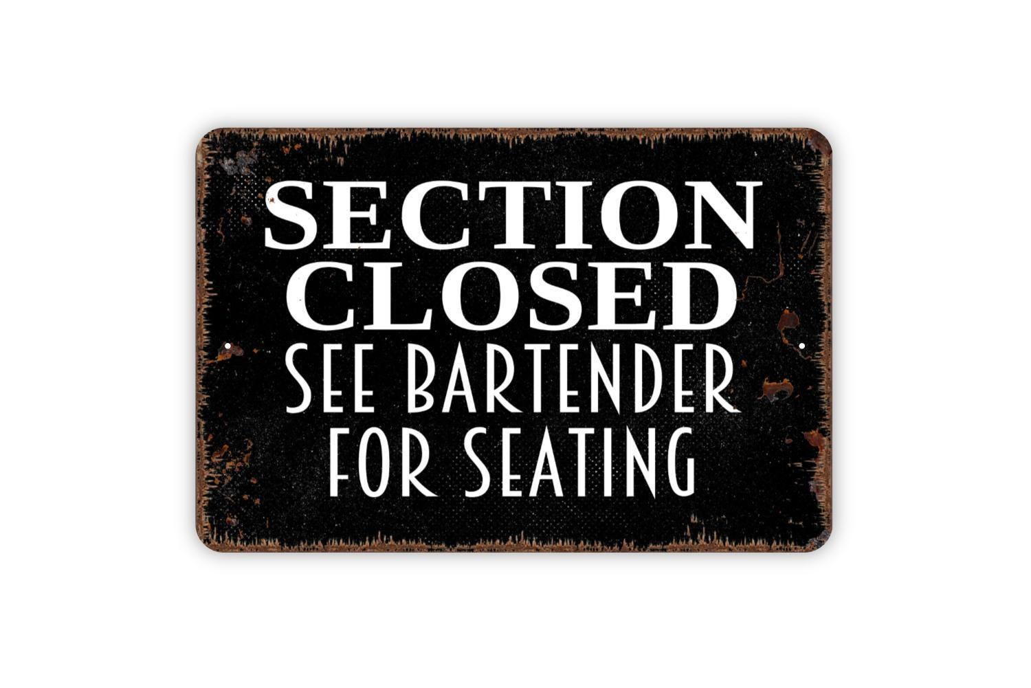 Section Closed See Bartender For Seating Sign - Restaurant Bar Event Venue Metal Indoor or Outdoor Wall Art