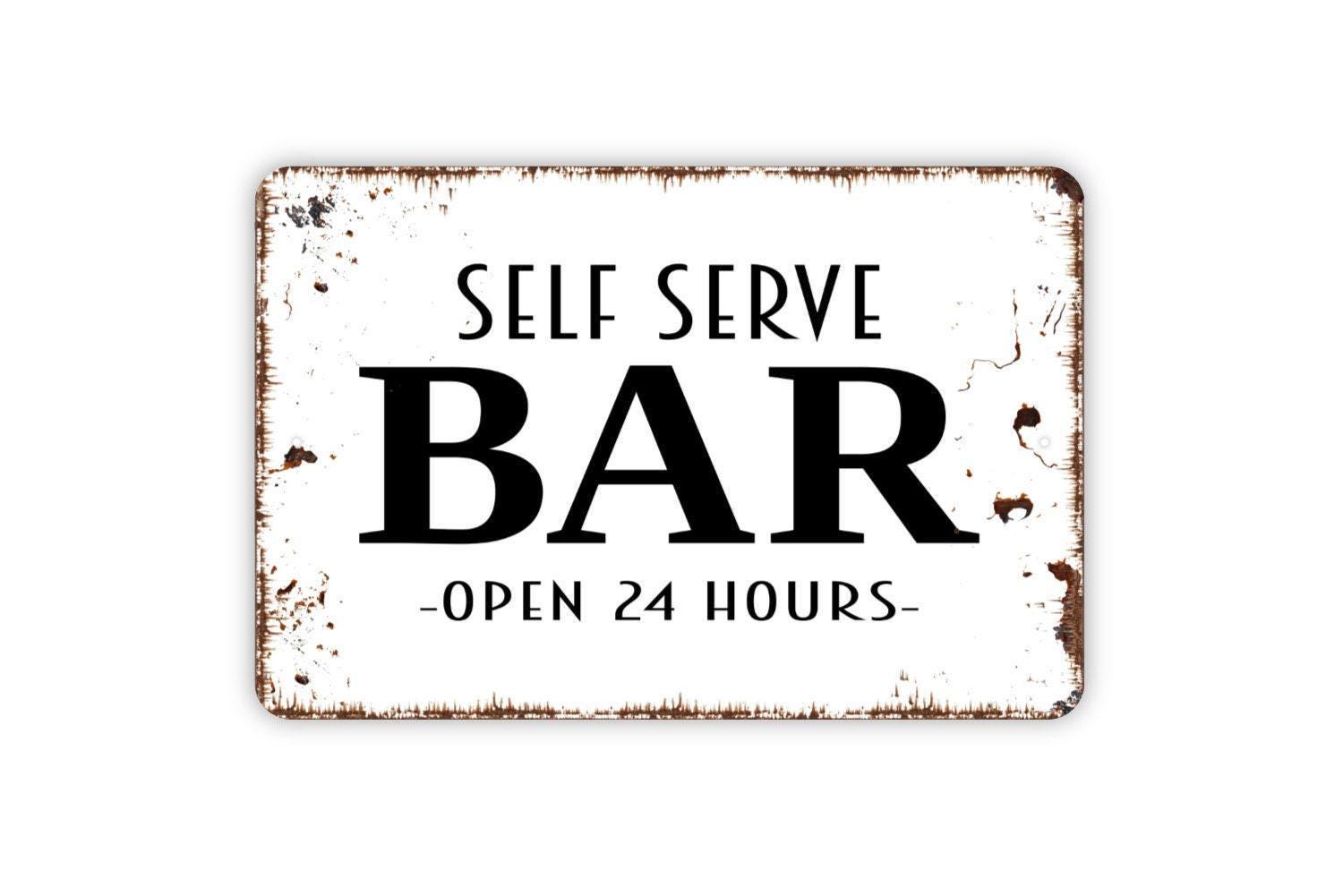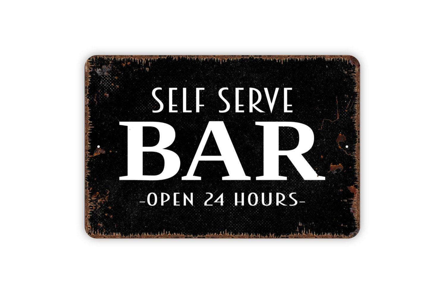 Self Serve Bar Open 24 Hours Sign – Rustic Home Bar Wall Decor – Funny Party or Pub Sign – Metal Sign or Vinyl Sticker