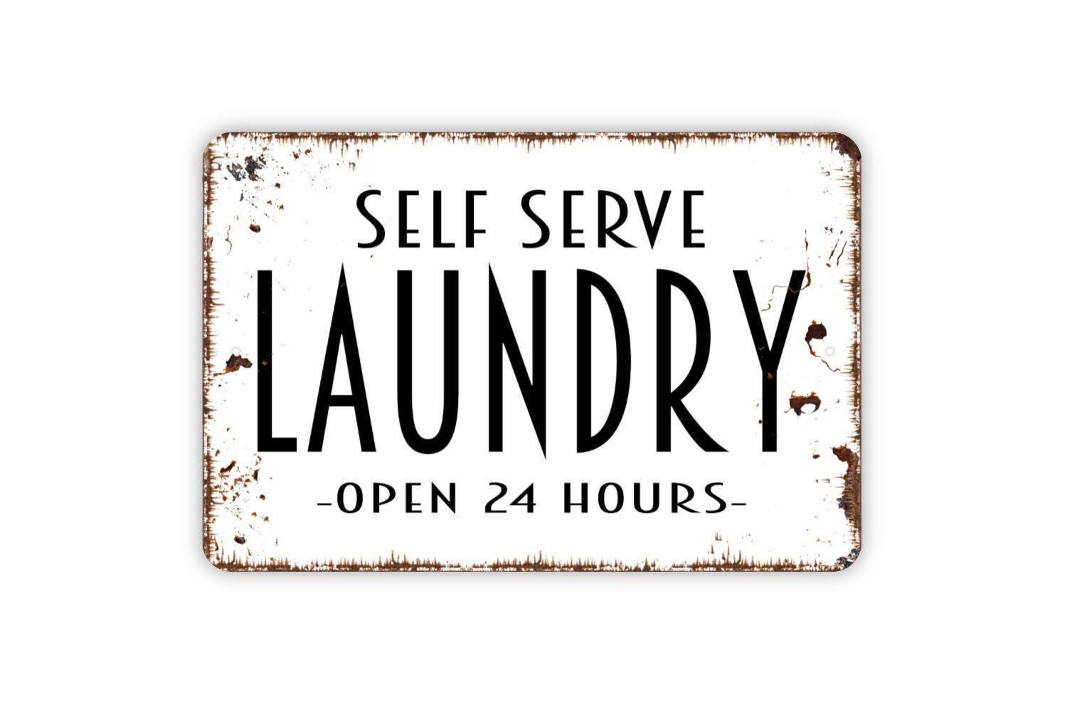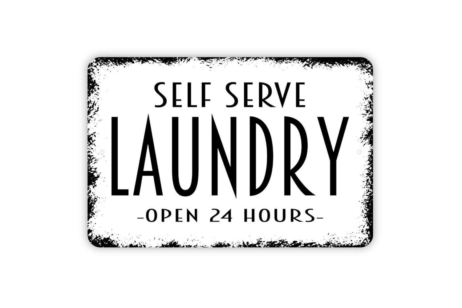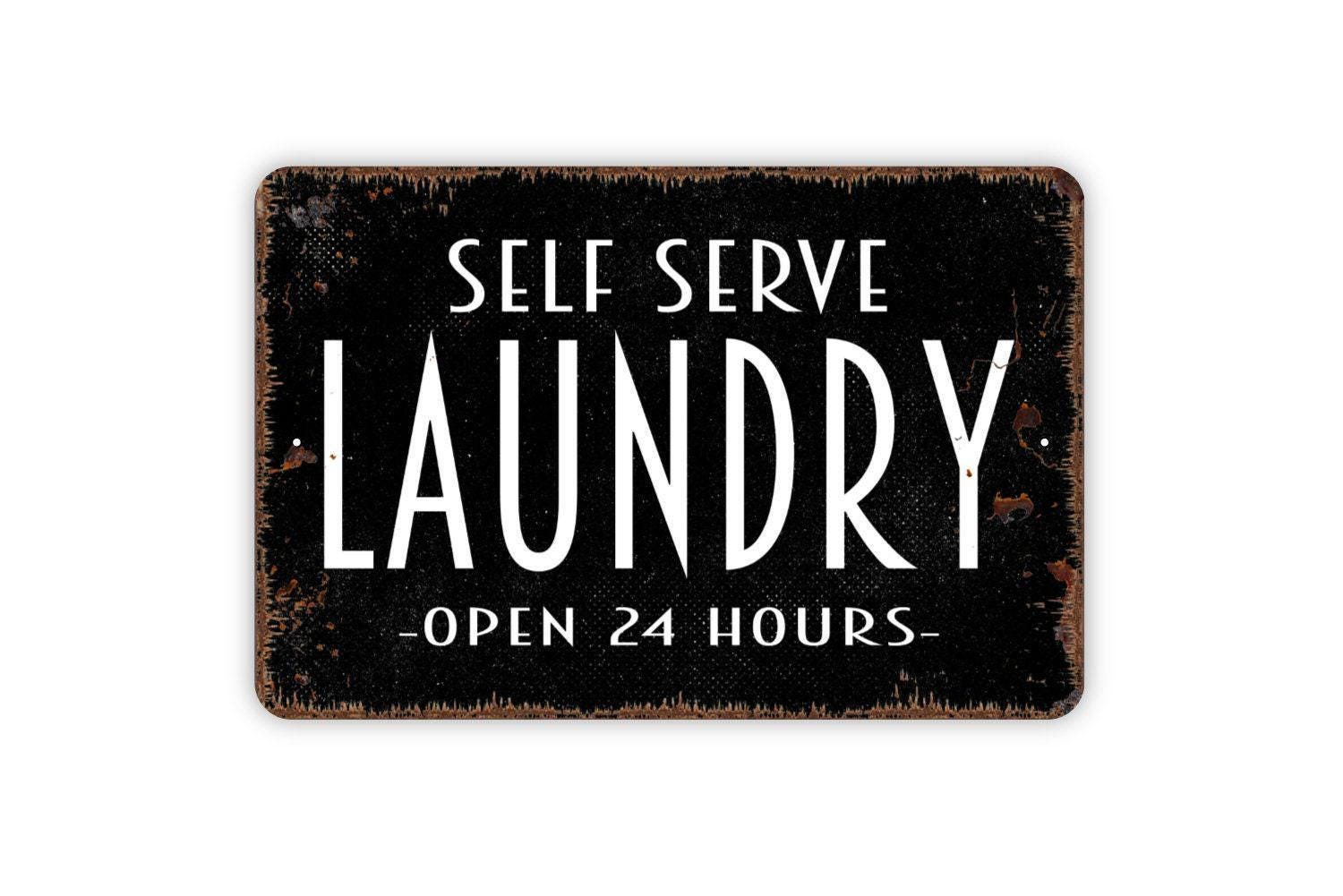 Self Serve Laundry Open 24 Hours Sign - Metal Wall Art