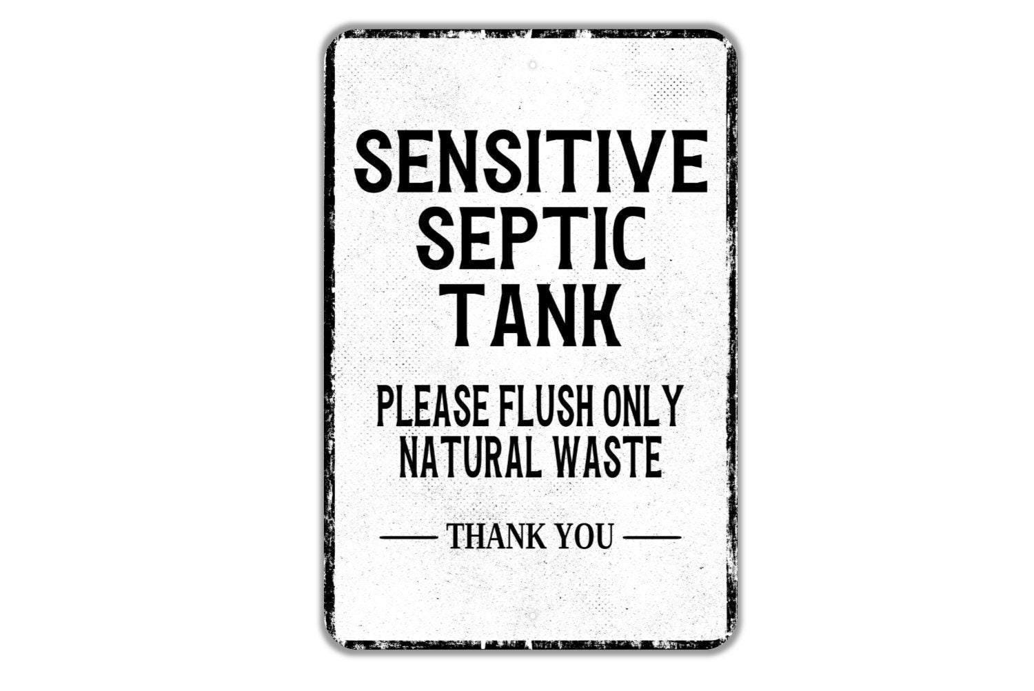 Sensitive Septic Tank Please Flush Only Natural Waste Thank You Sign Metal Wall Art or Vinyl Sticker for Bathroom, Restroom, Toilet Rules