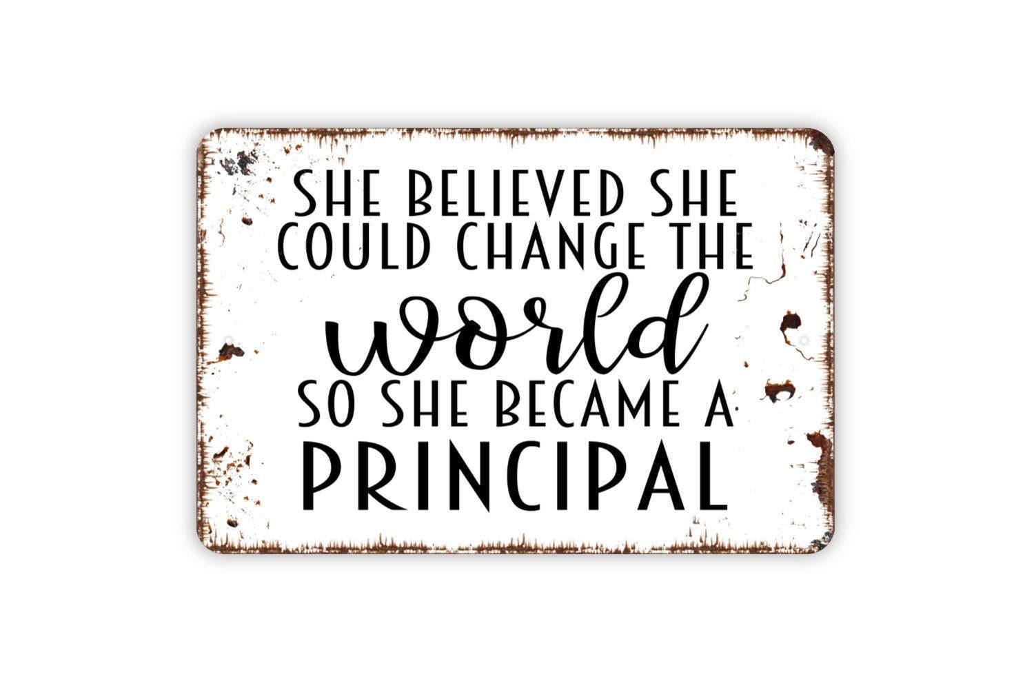 She Believed She Could Change The World So She Became A Principal Sign - Inspirational Metal Indoor or Outdoor Wall Art