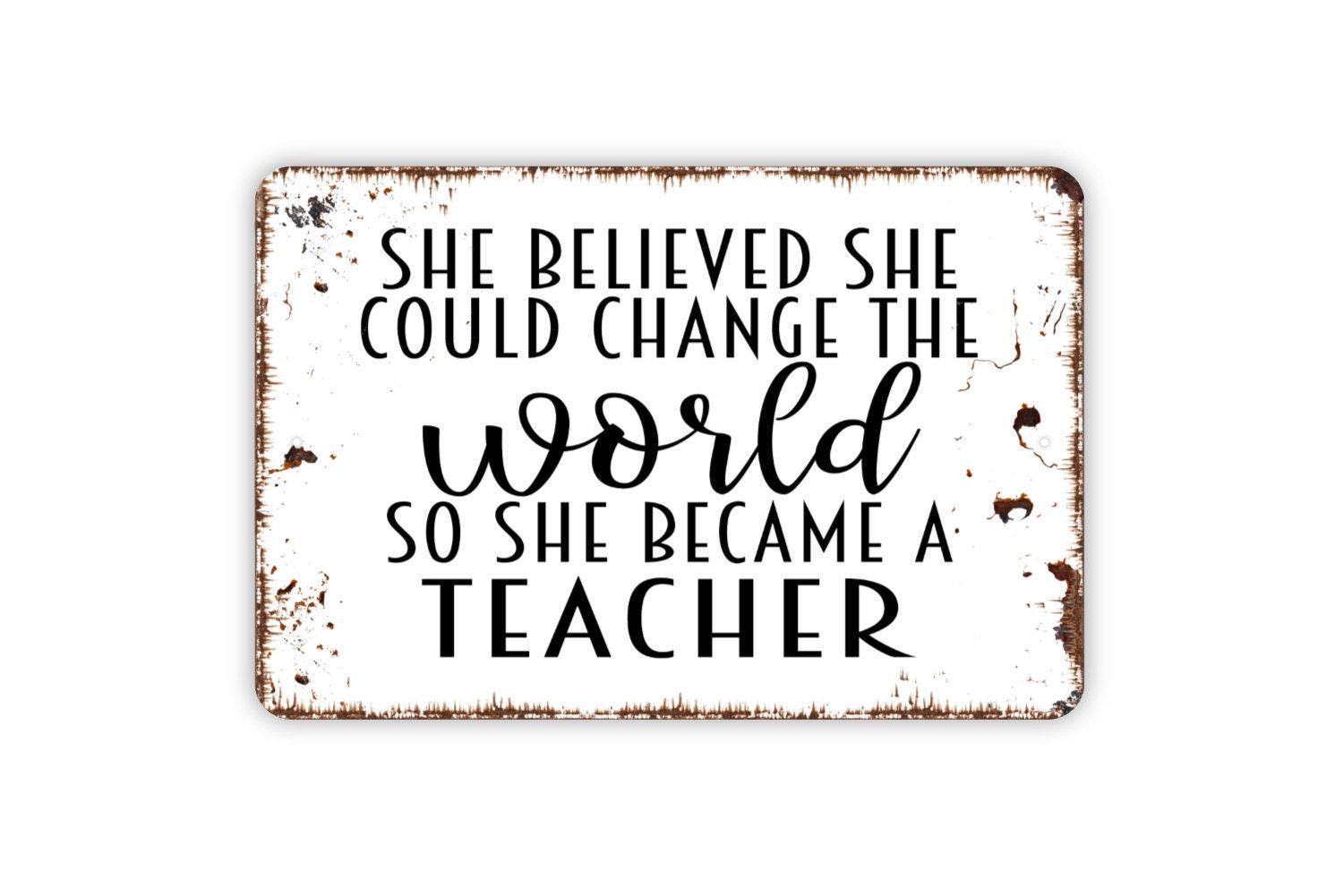 She Believed She Could Change The World So She Became A Teacher Sign - Inspirational Metal Wall Art - Indoor or Outdoor