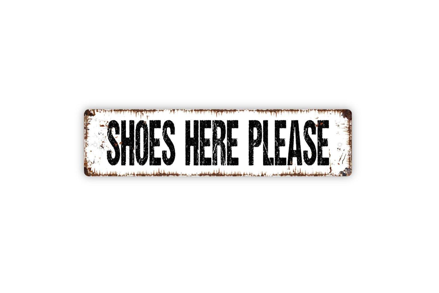 Shoes Here Please Sign - Welcome Come In No Shoes Allowed Place Shoes Here Vinyl Sticker Or Metal Street Sign or Door Name Plate Plaque