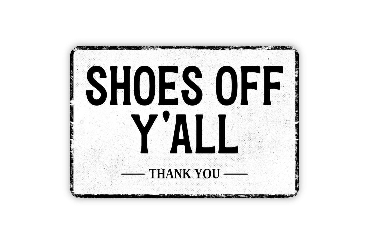 Shoes Off Y’all Thank You Sign | Southern Entryway Wall Sign | Rustic Farmhouse Metal Sign or Vinyl Sticker for Home or Porch