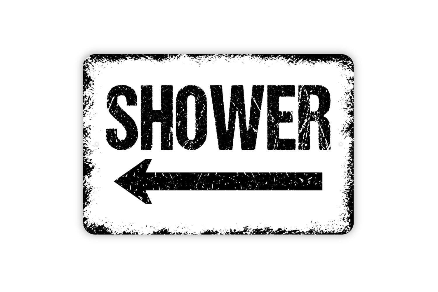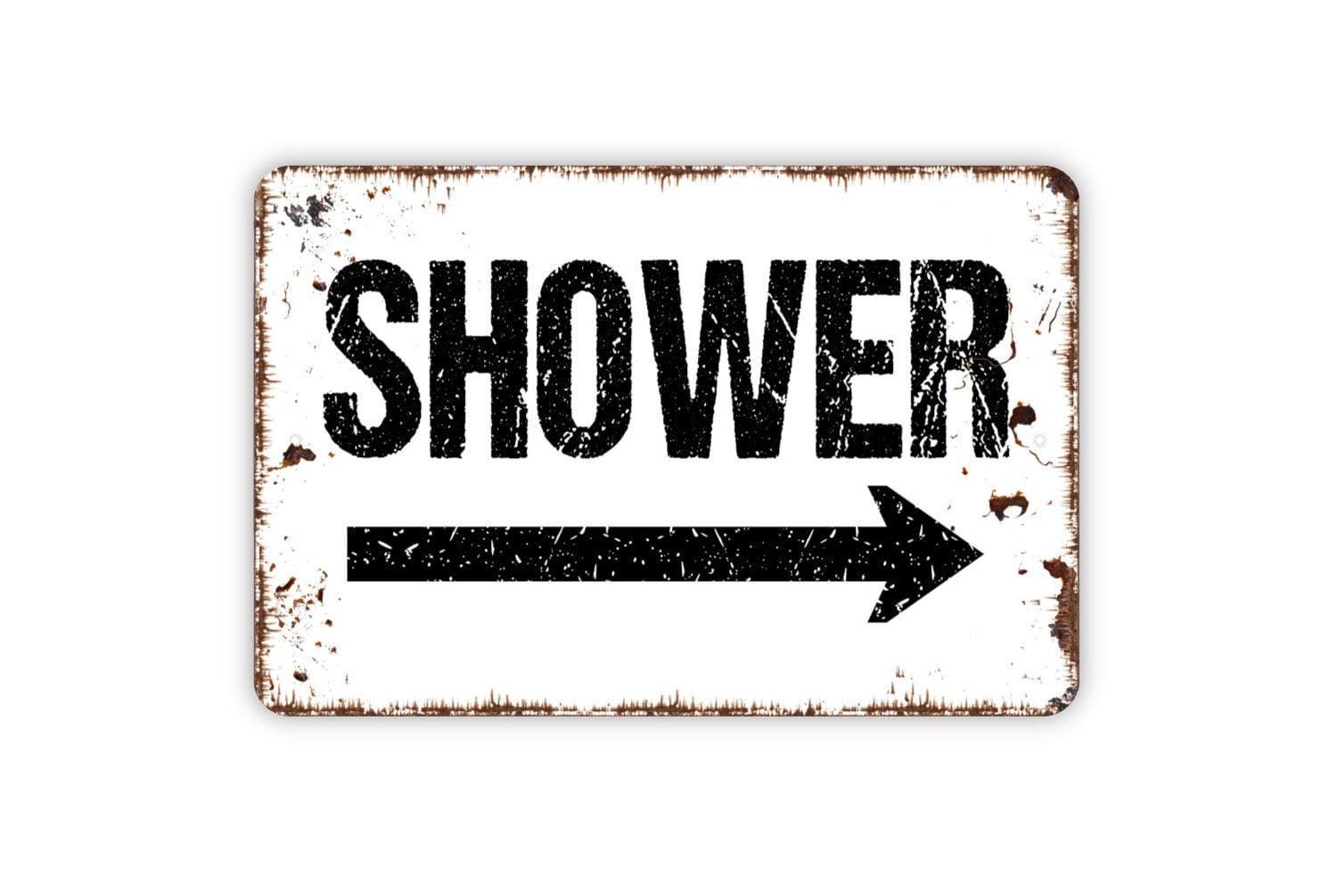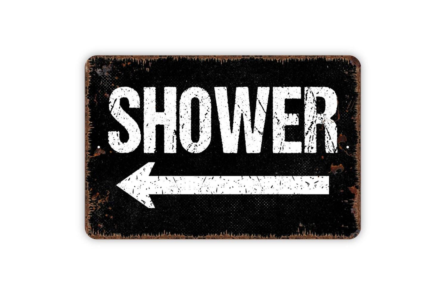 Shower With Arrow Sign – Bathroom Direction Wall Decor – Guest Bath or Pool House Sign – Metal Sign or Vinyl Sticker