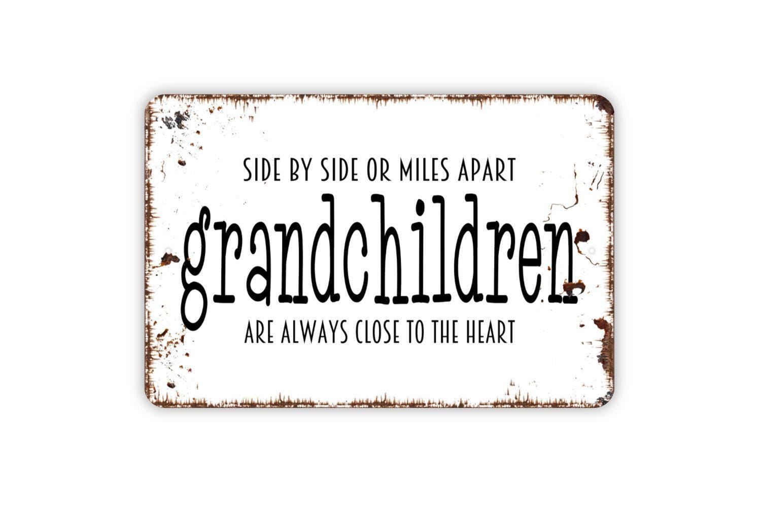 Side By Side Or Miles Apart Grandchildren Are Always Close To The Heart Sign - Metal Wall Art - Indoor or Outdoor