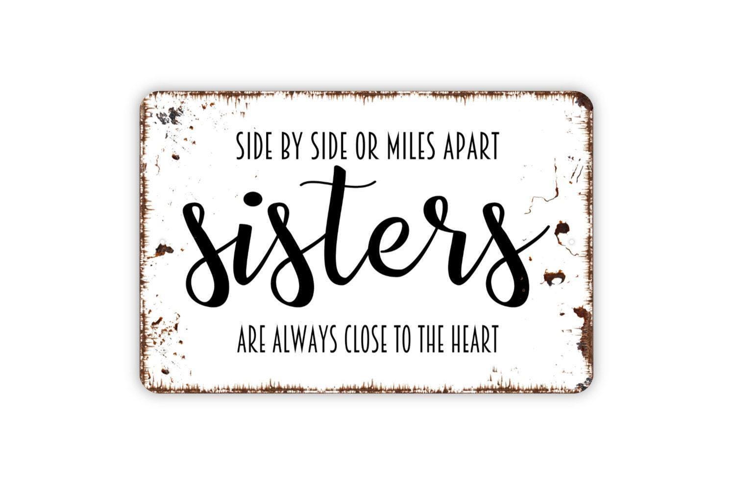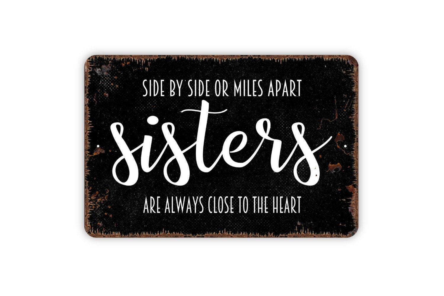 Side By Side Or Miles Apart Sisters Are Always Close To The Heart Sign - Metal Wall Art