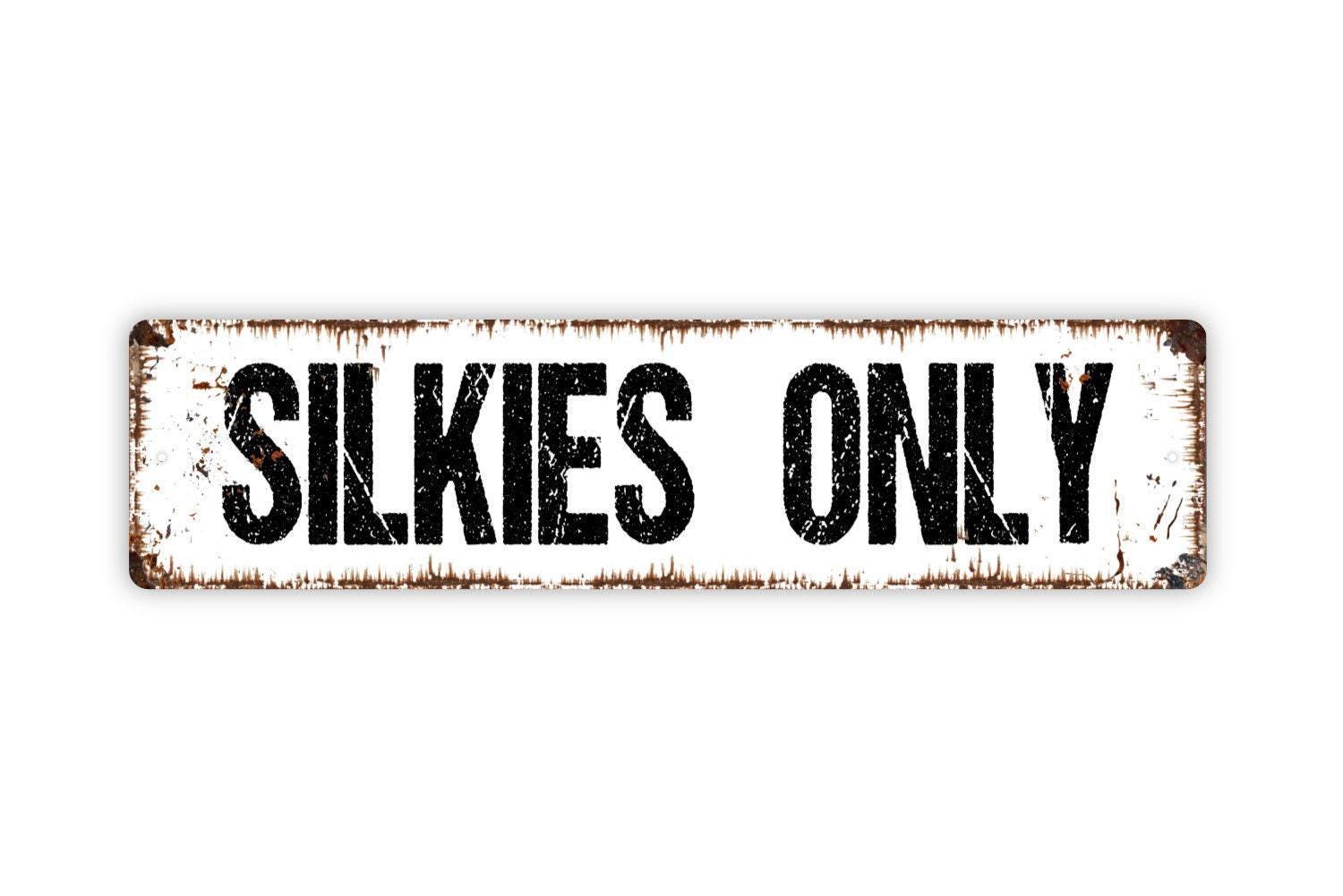Silkies Only Sign - Chicken Coop Hen Rooster Farm Fresh Eggs Hen House Vinyl Sticker Or Street Metal Sign or Door Name Plate Plaque