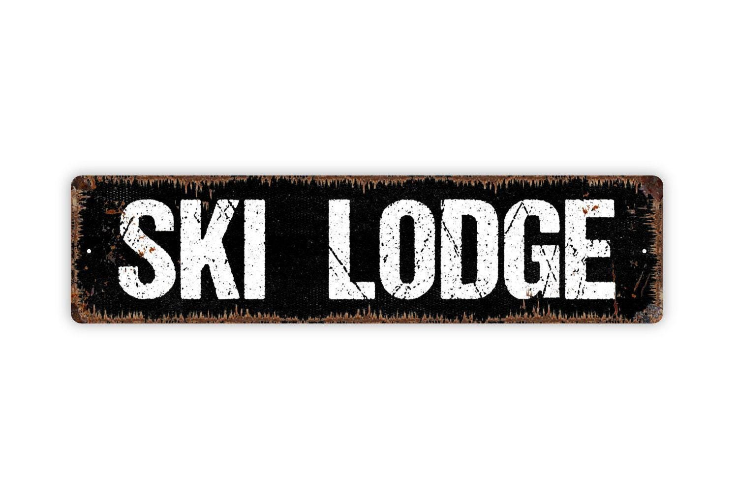 Ski Lodge Sign - Welcome To Resort Skiing Mountains Vinyl Sticker Or Street Metal Sign or Door Name Plate Plaque