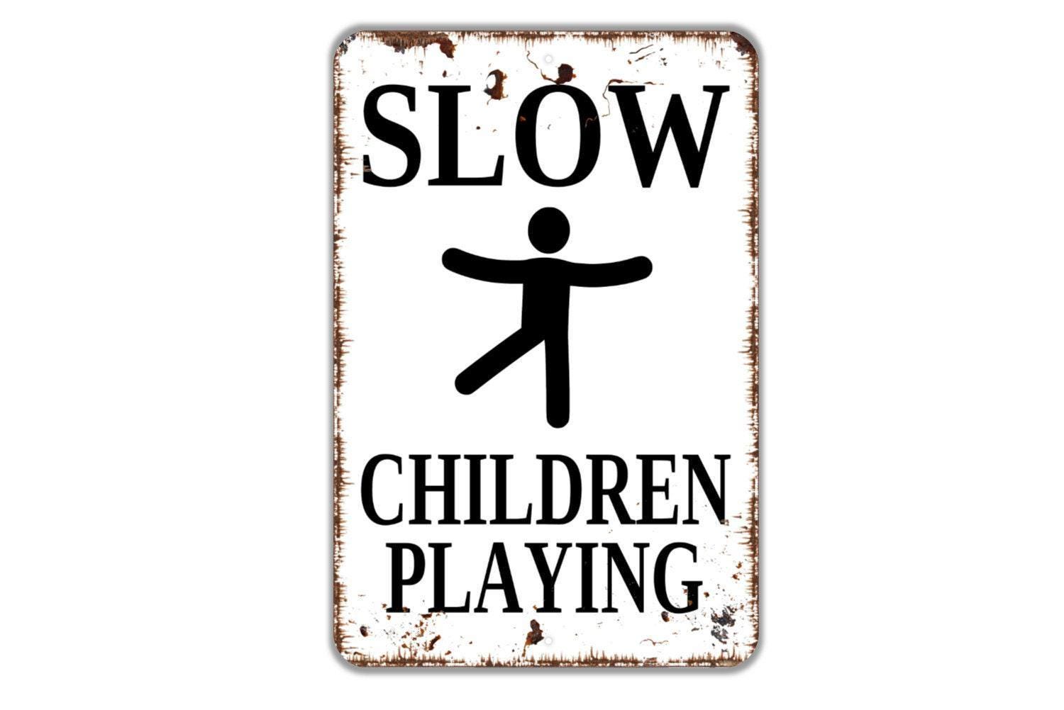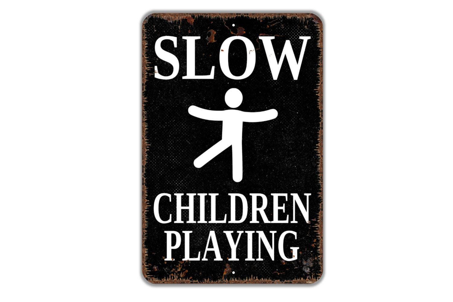Slow Children Playing Sign - Slow Children At Play Metal Wall Art