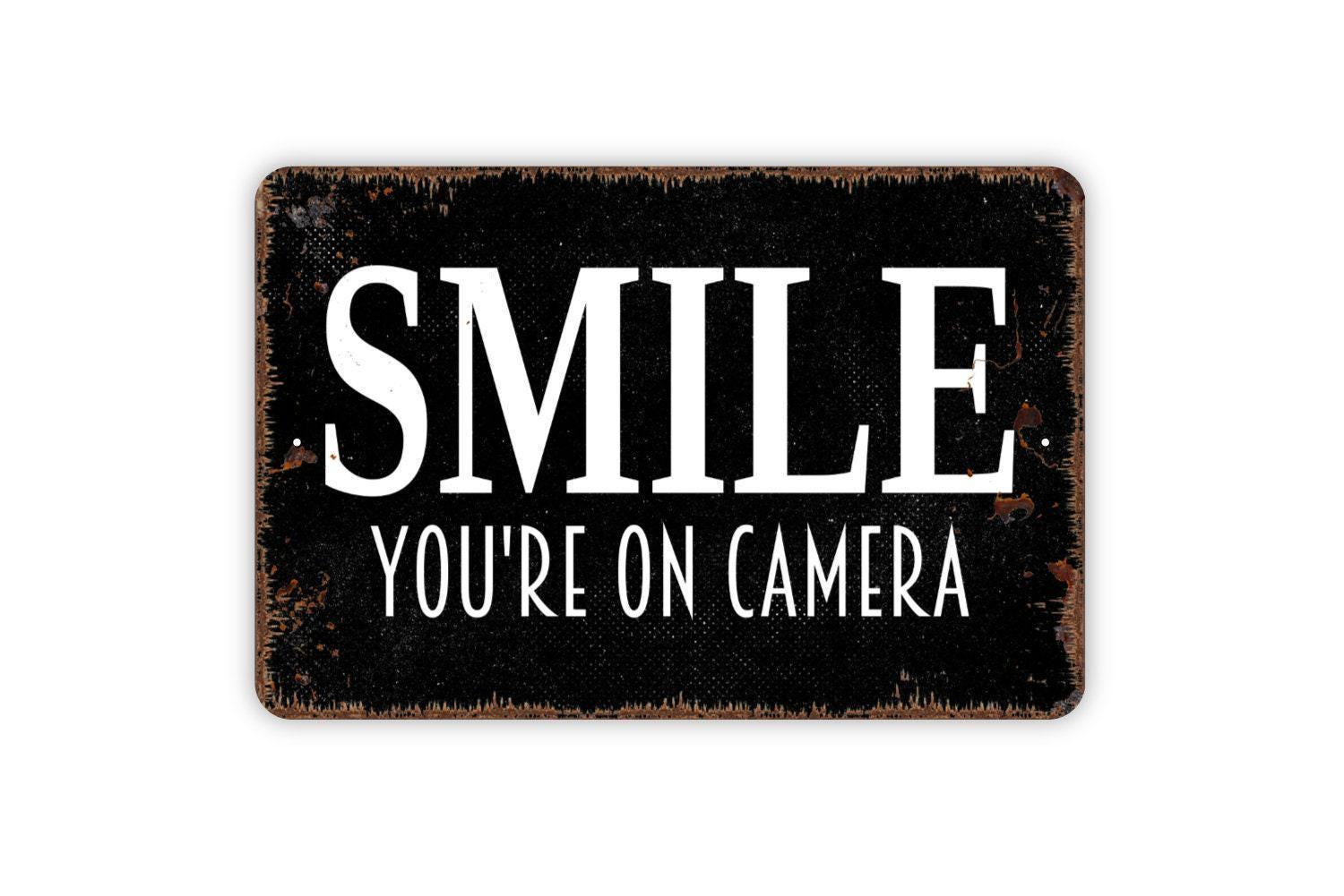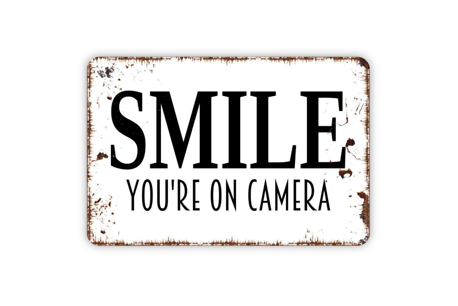 Smile You’re On Camera Sign – Security Warning Wall Decor – Outdoor Yard or Fence Sign – Metal Sign or Vinyl Sticker