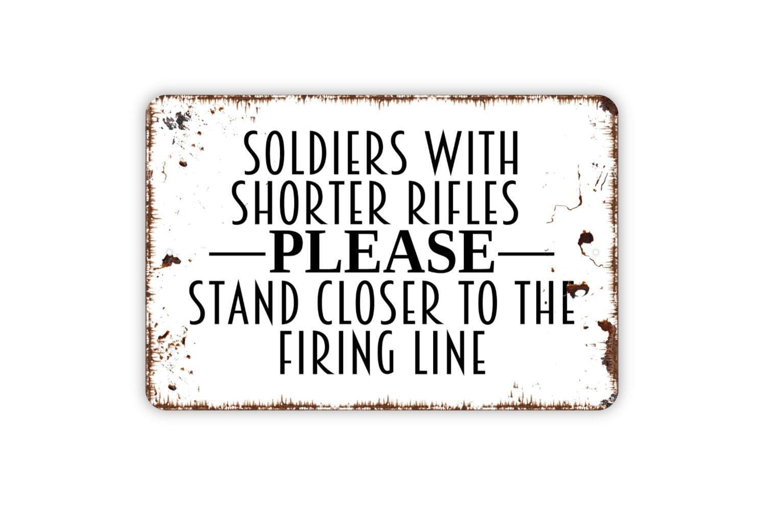 Soldiers With Shorter Rifles Please Stand Closer to The Firing Line Sign Metal or Vinyl Sticker | Funny Military Bathroom Sign Veteran Gift