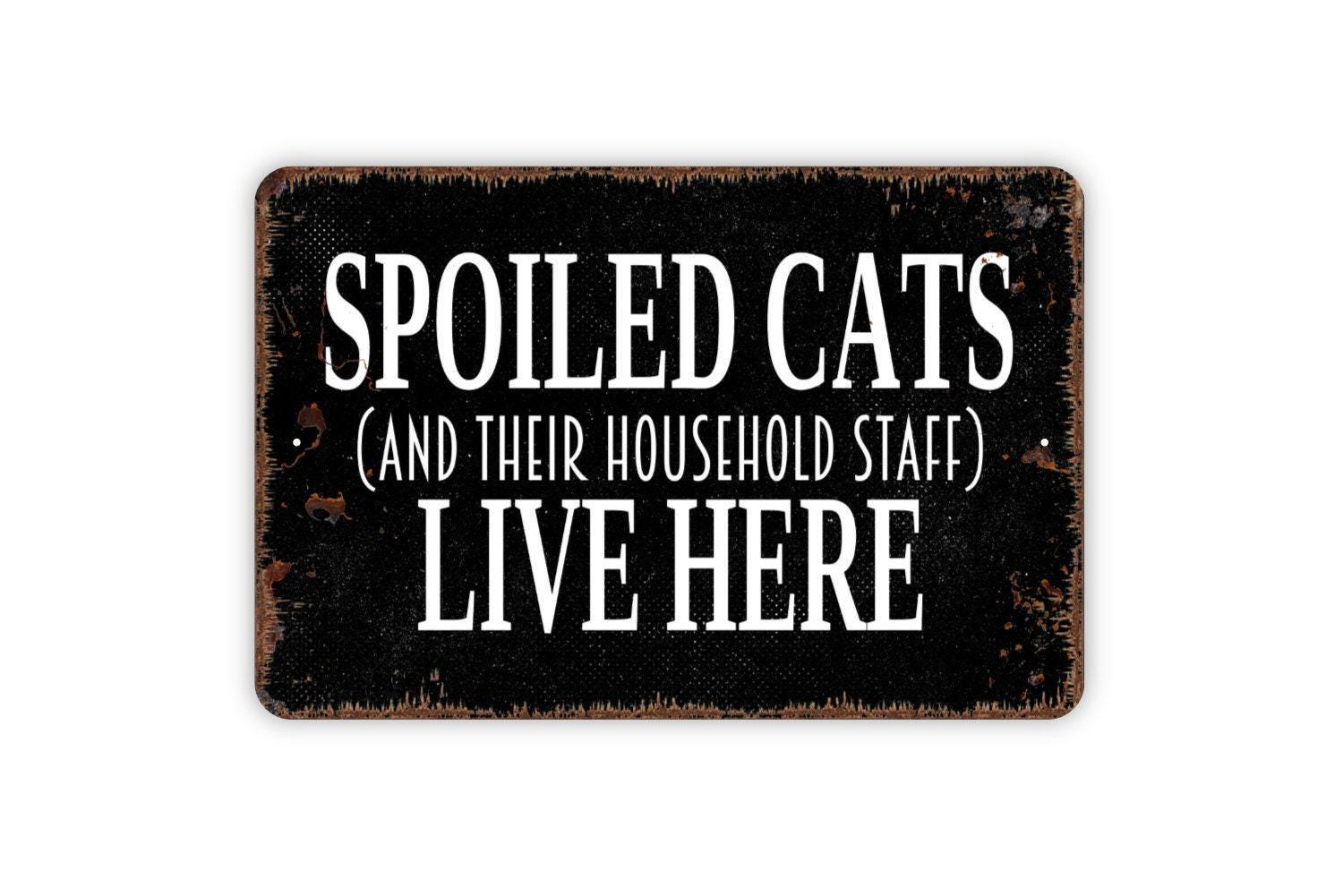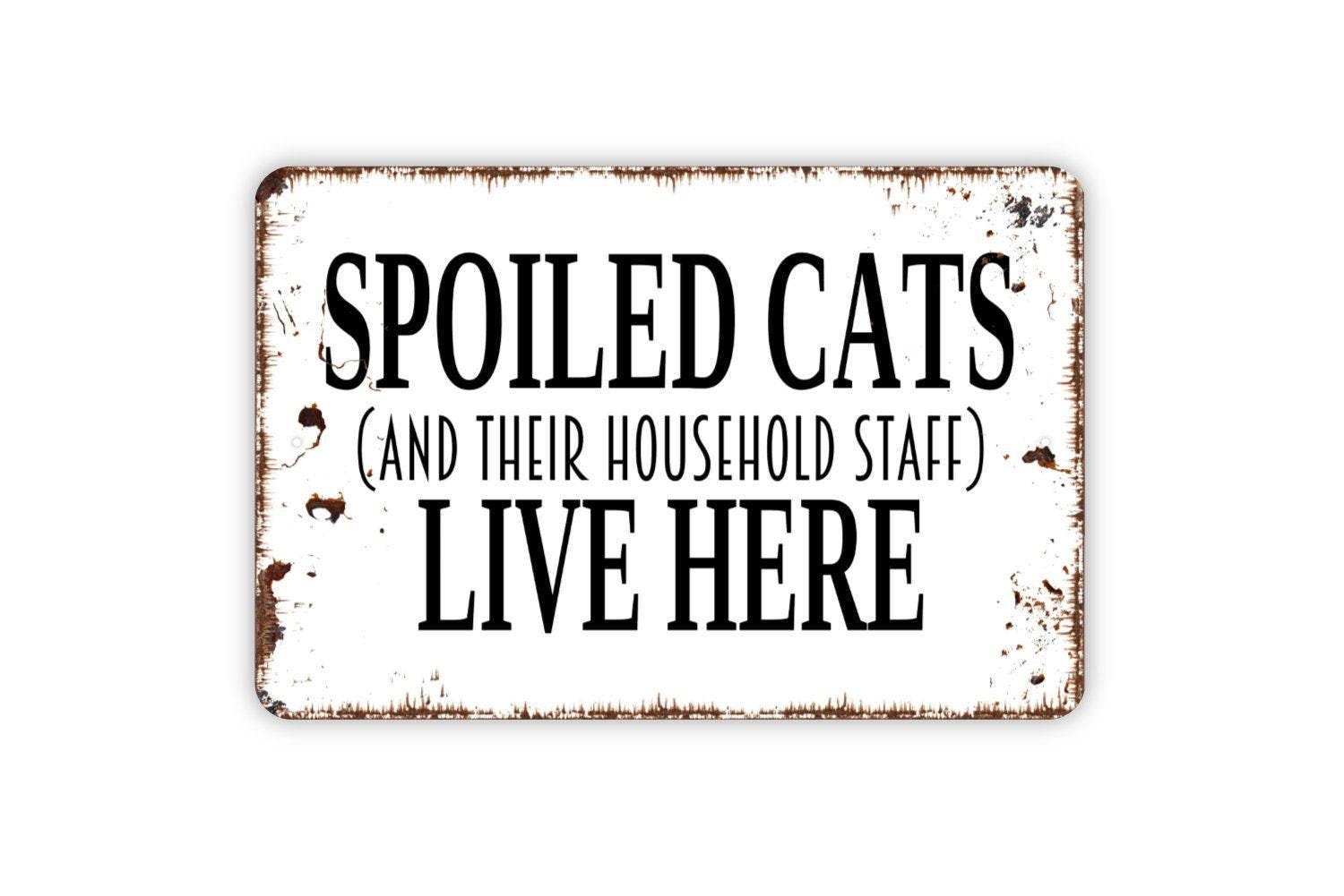 Spoiled Cats and Their Household Staff Sign | Funny Cat Lover Home Decor | Pet Humor Wall Sign | Metal Sign or Vinyl Sticker