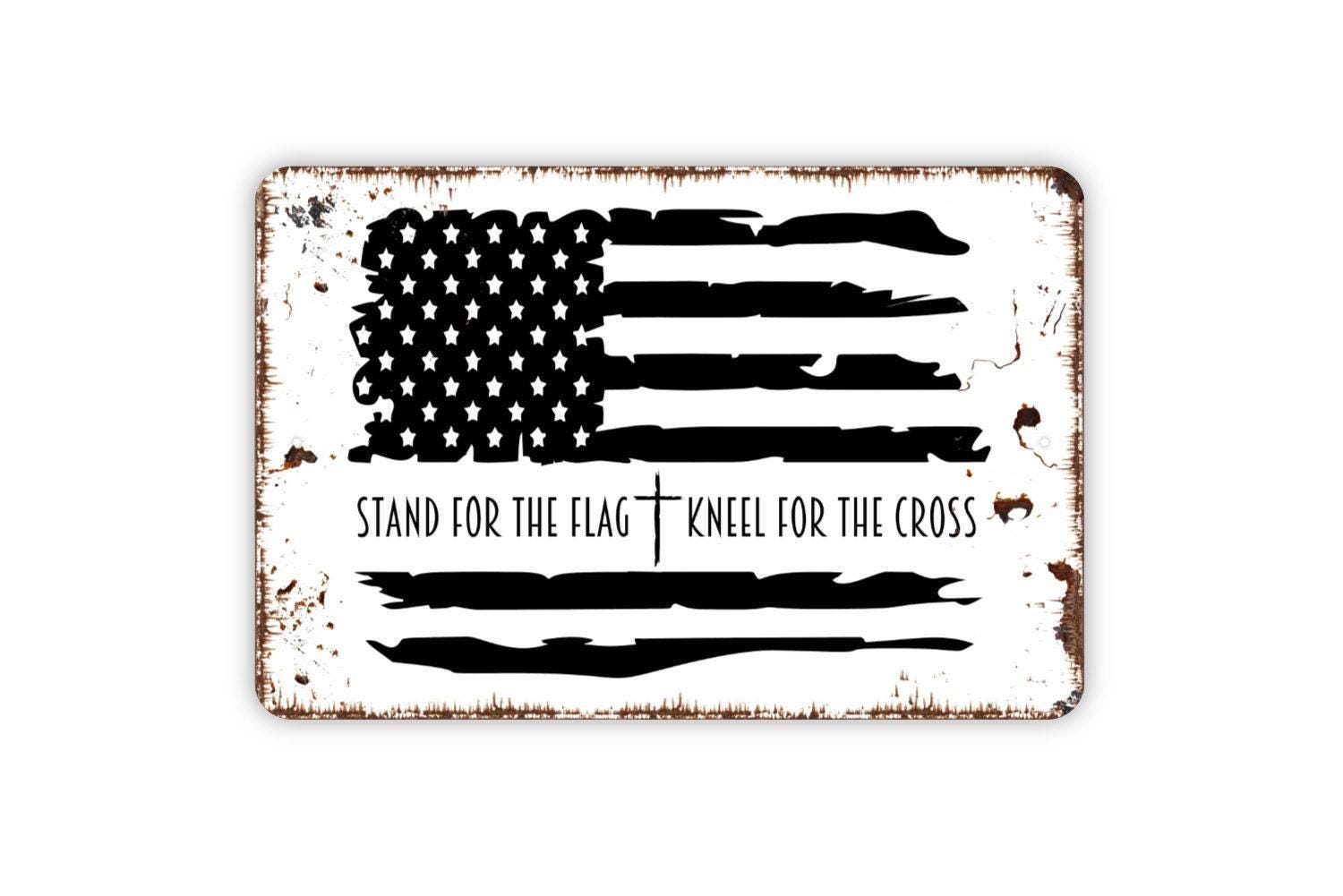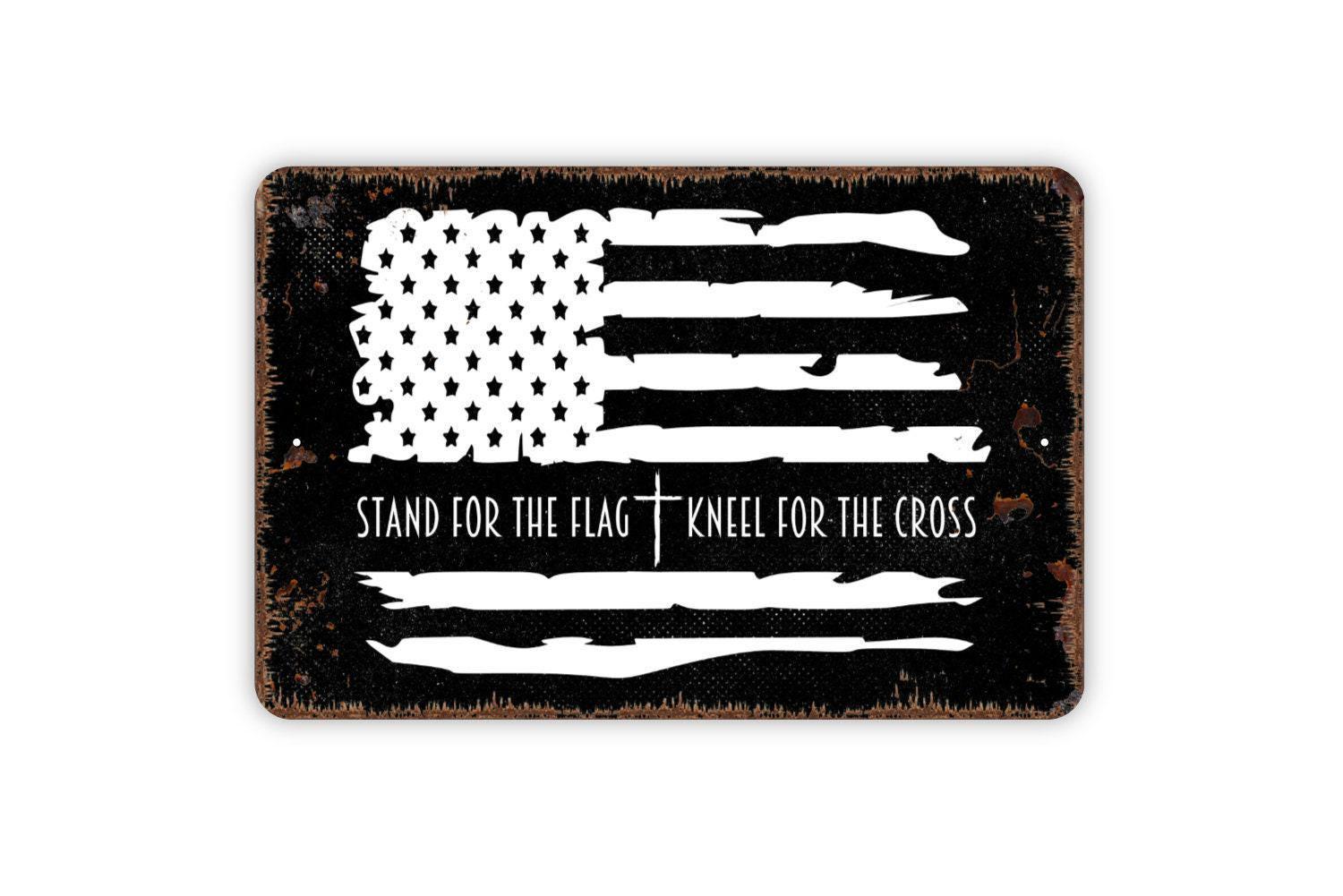 Stand For The Flag Kneel For The Cross Sign | Patriotic Christian Wall Decor | Metal Sign or Vinyl Sticker for Home, Church, or Office