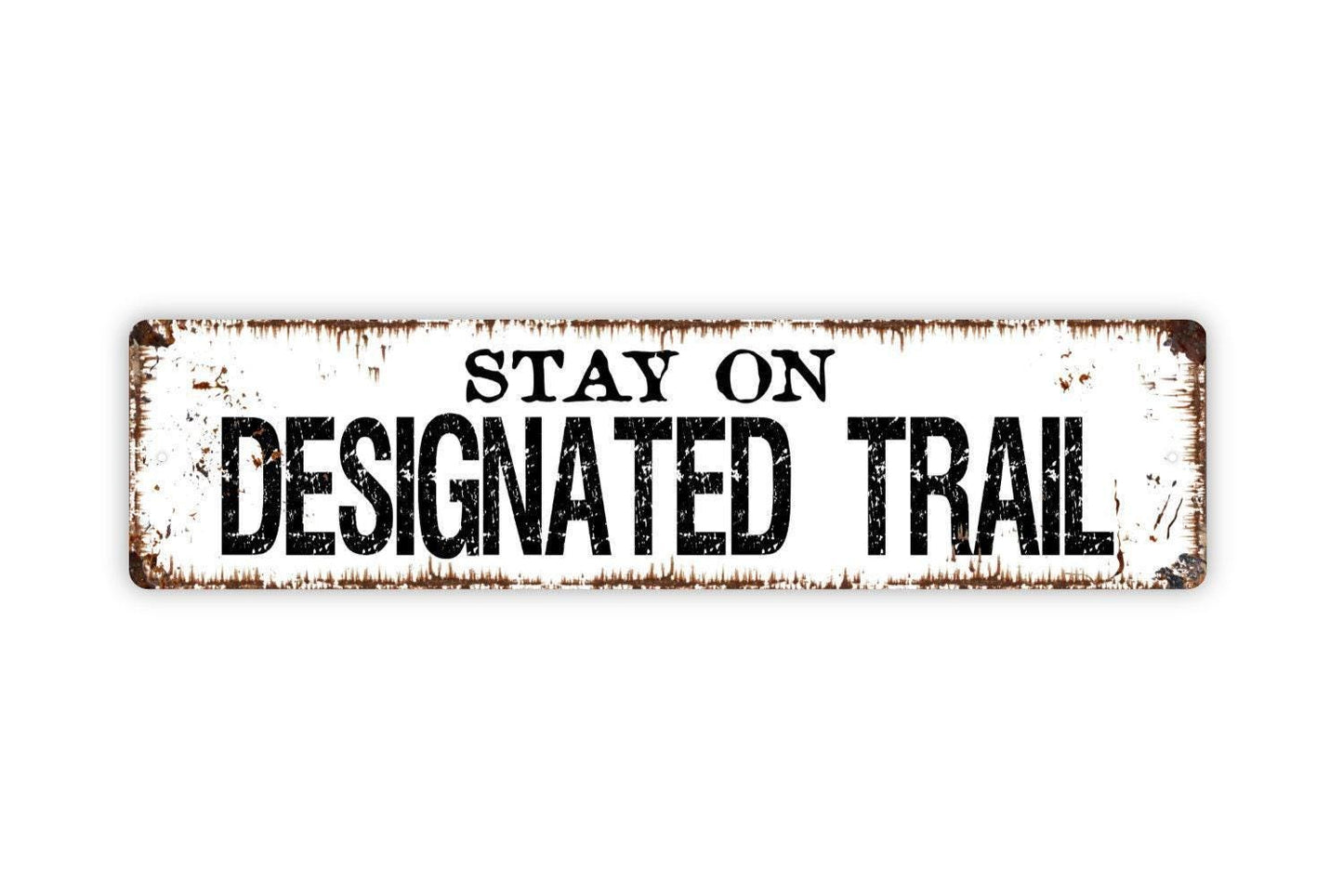 Stay On Designated Trail Metal Sign - Hiking Biking Trail Marker Path Outdoor Adventure Rustic Street Metal Sign or Door Name Plate Plaque