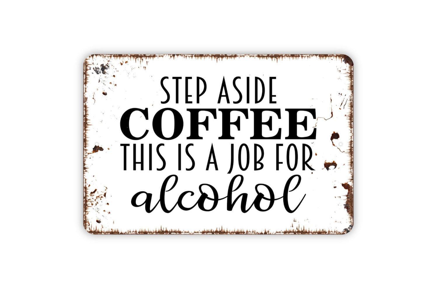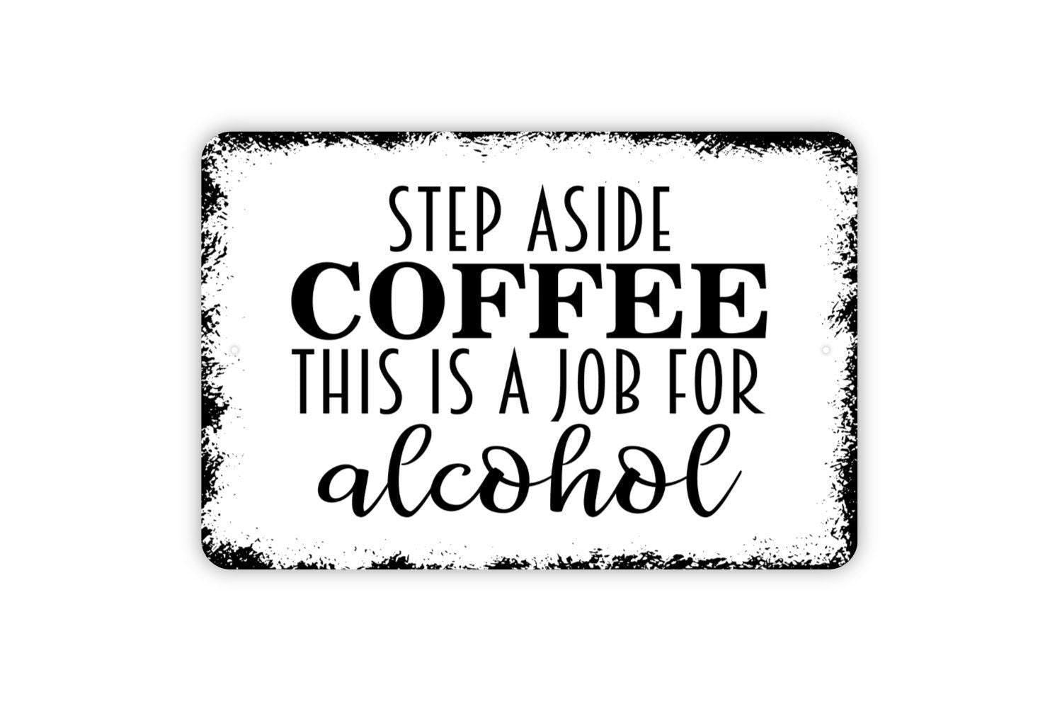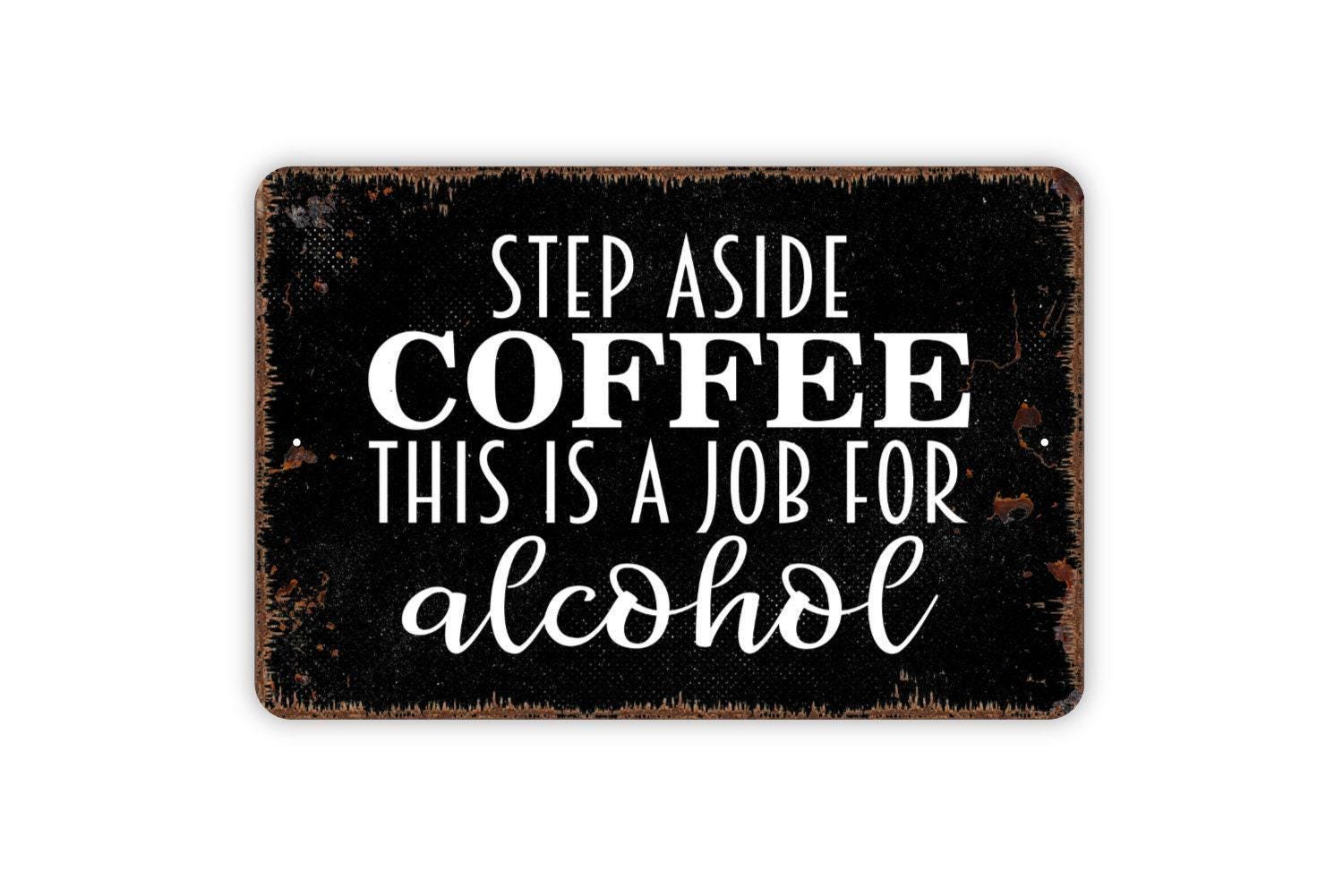 Step Aside Coffee This Is A Job For Alcohol Sign - Funny Metal Indoor or Outdoor Wall Art