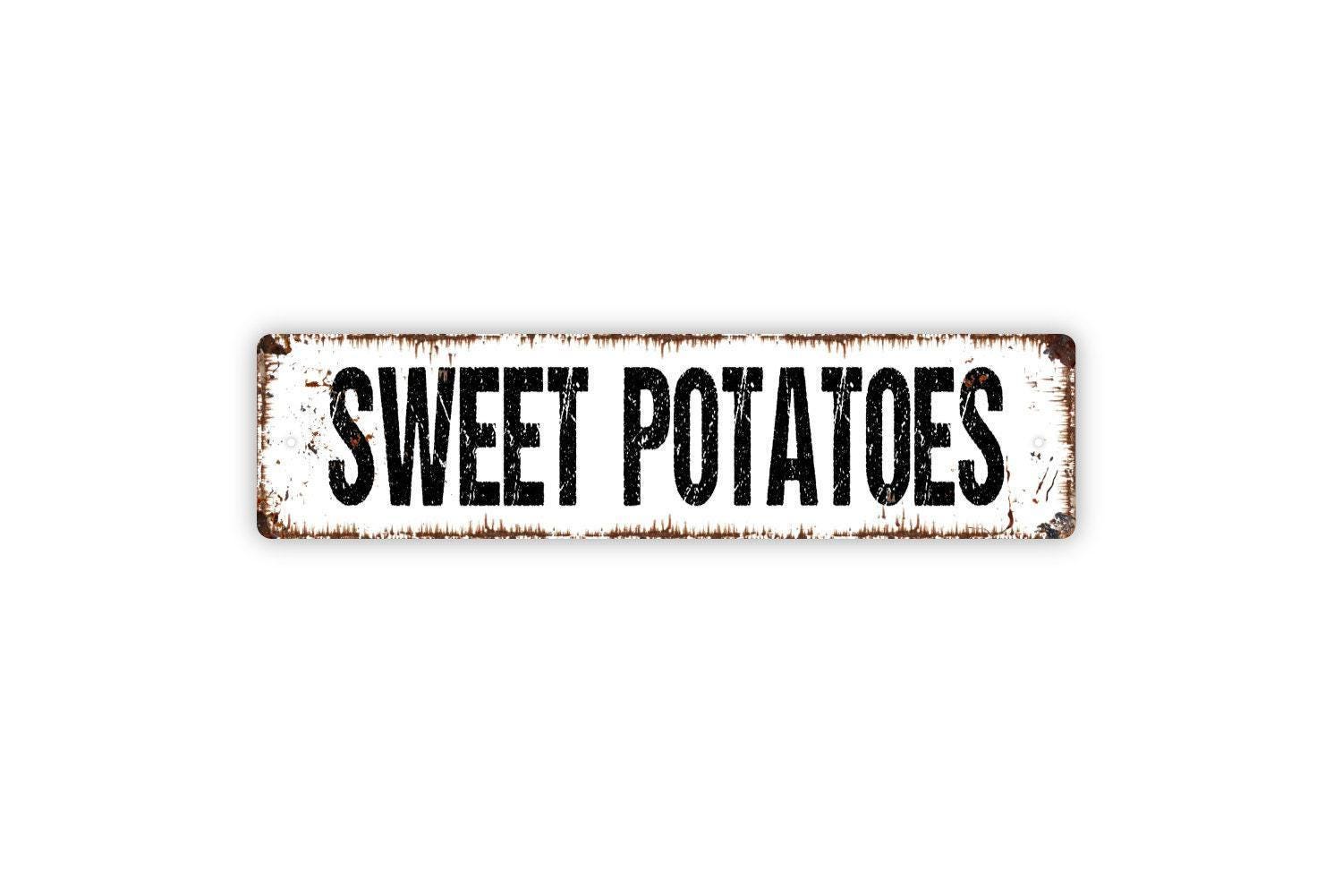 Sweet Potatoes Sign – Rustic Farmhouse Kitchen Wall Decor – Vegetable Garden Market Farm Stand Barn Sign – Metal Sign or Sticker