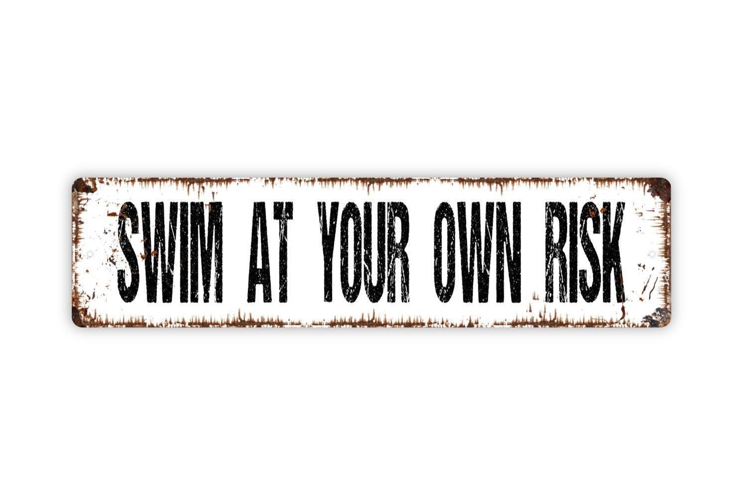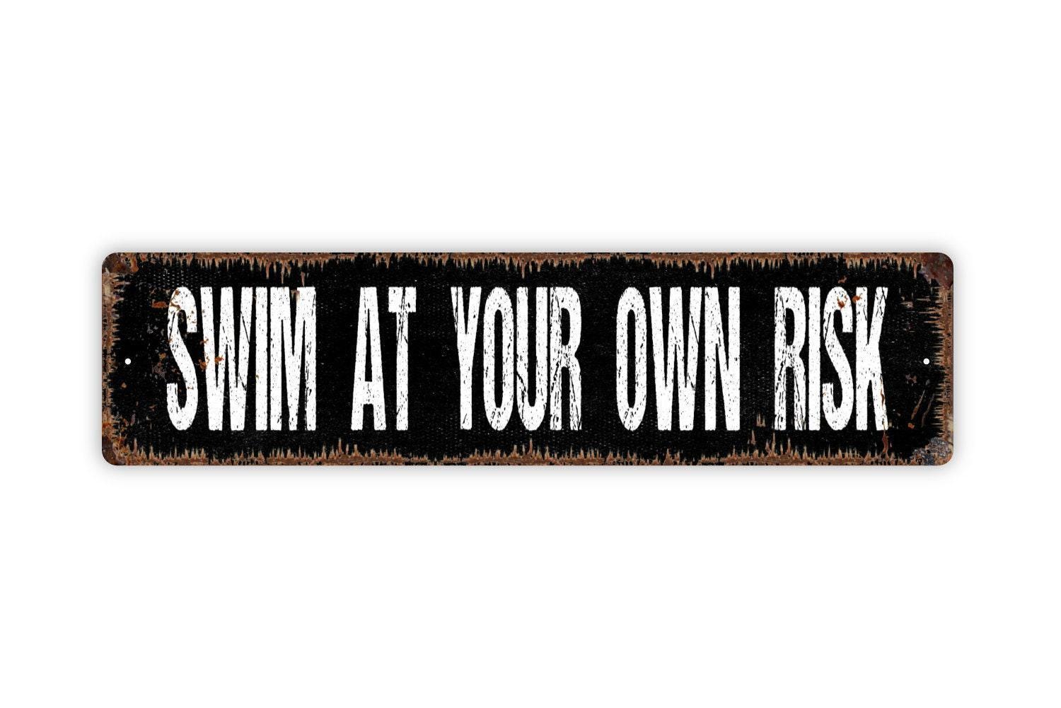 Swim At Your Own Risk Sign - Pool Vinyl Sticker Or Metal Street Sign or Door Name Plate Plaque