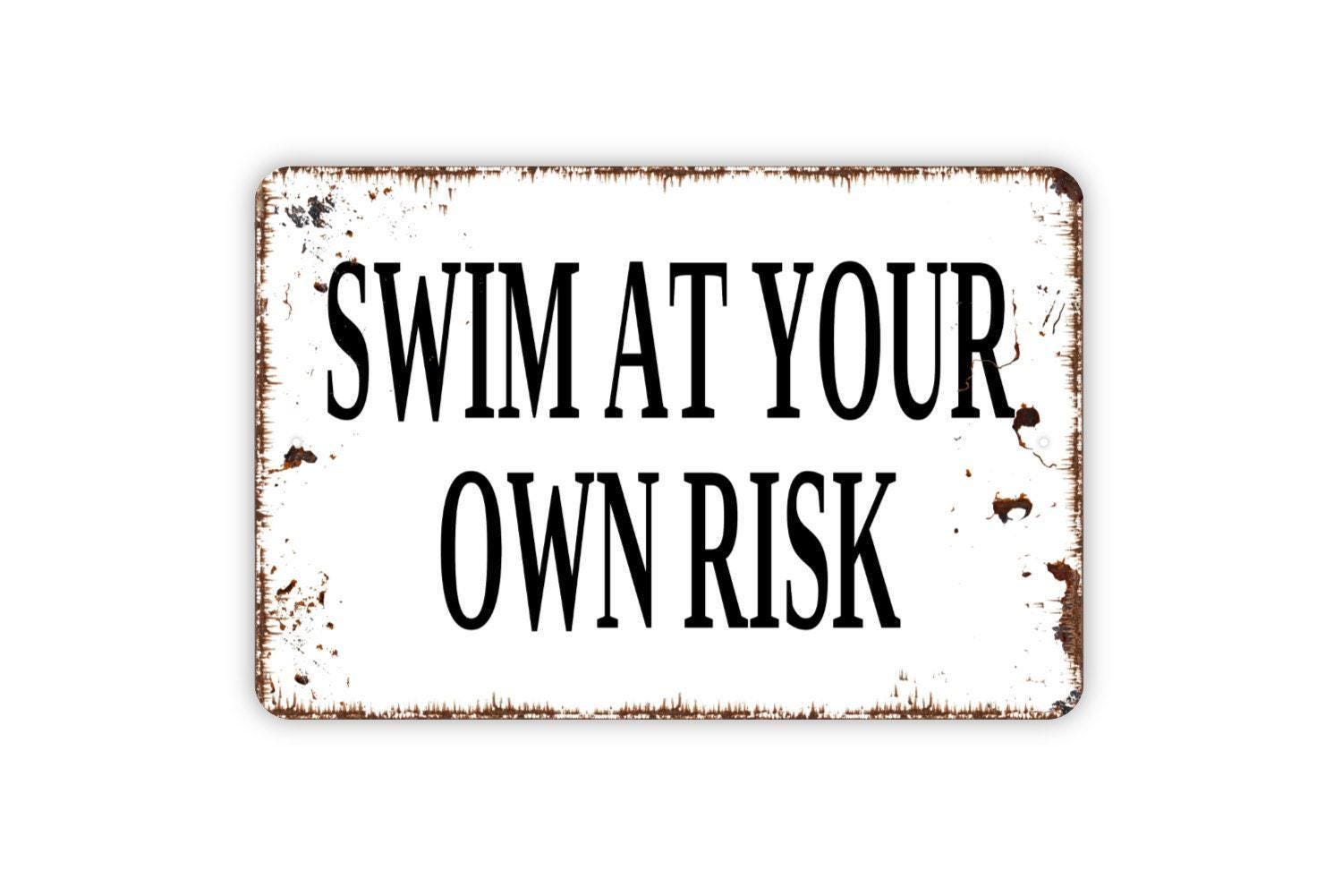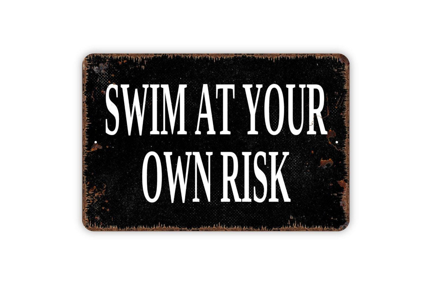 Swim At Your Own Risk Sign - Swimming Pool Warning Metal Wall Art - Indoor or Outdoor