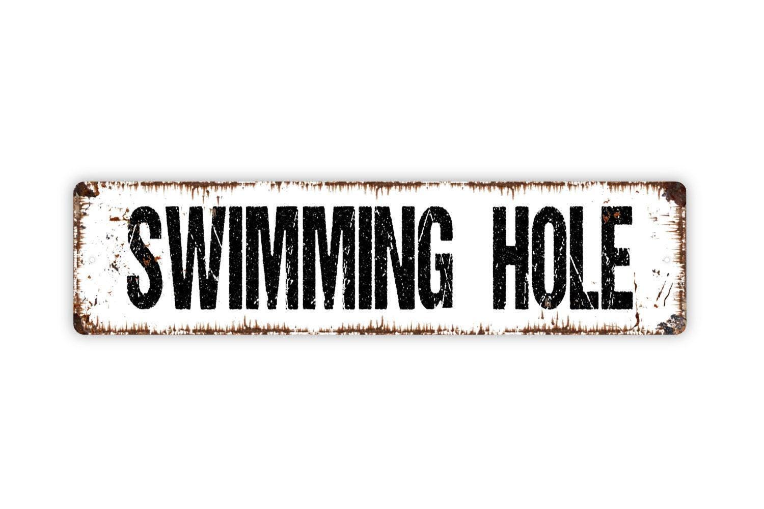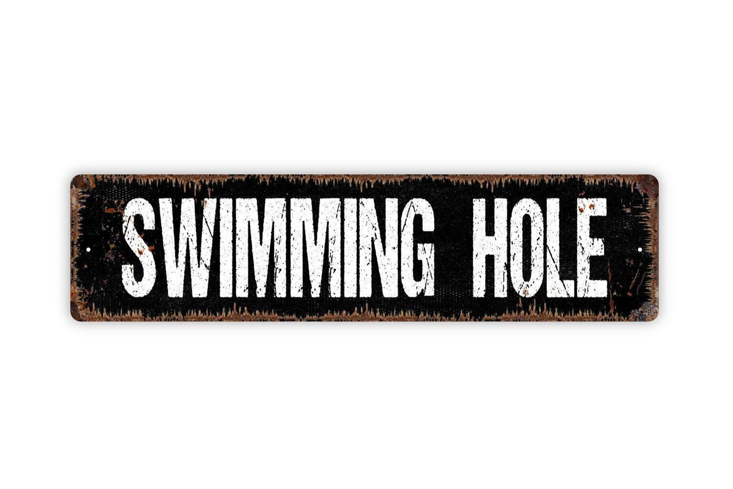 Swimming Hole Sign - Lake River Creek Pool Beach Vinyl Sticker Or Street Metal Sign or Door Name Plate Plaque
