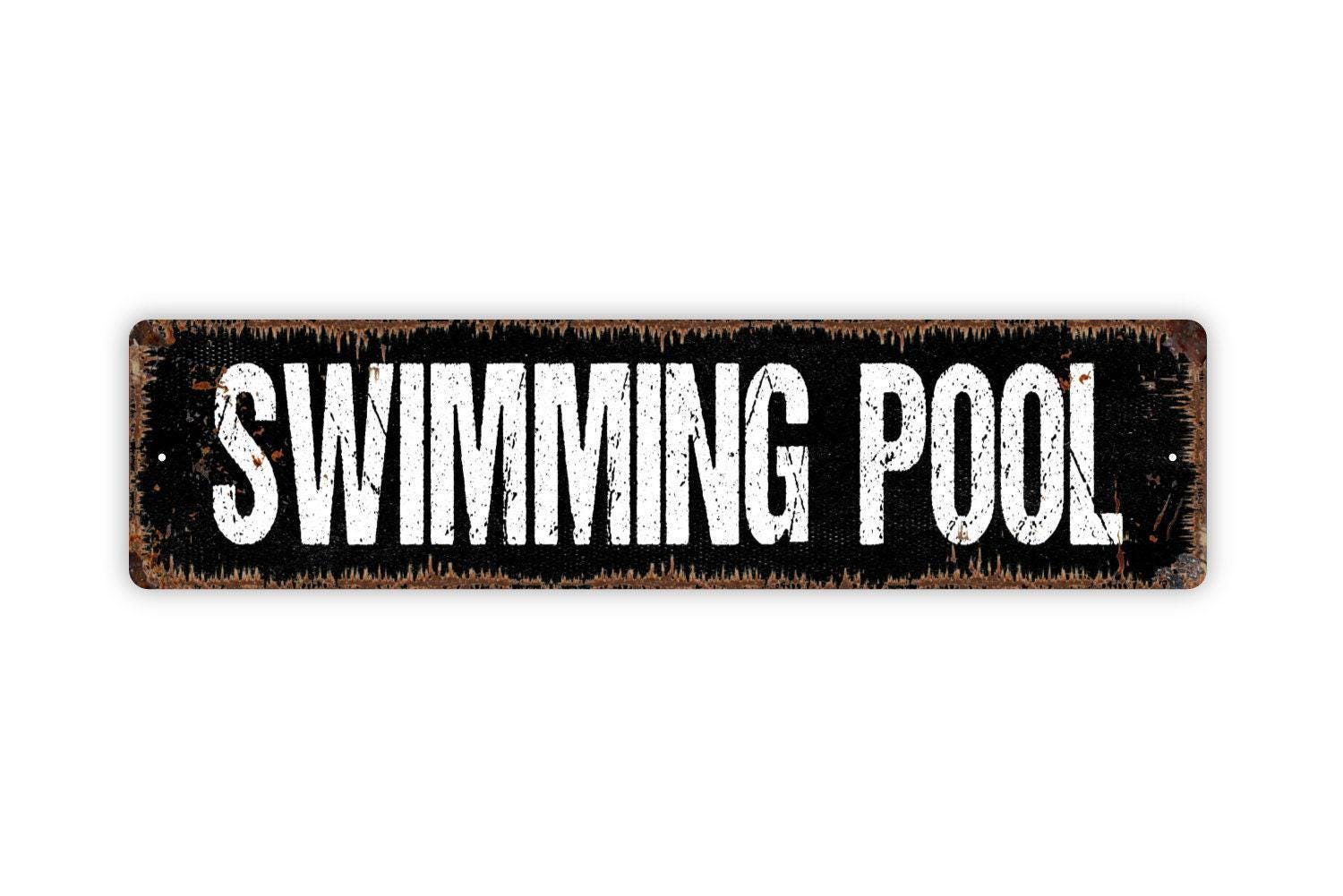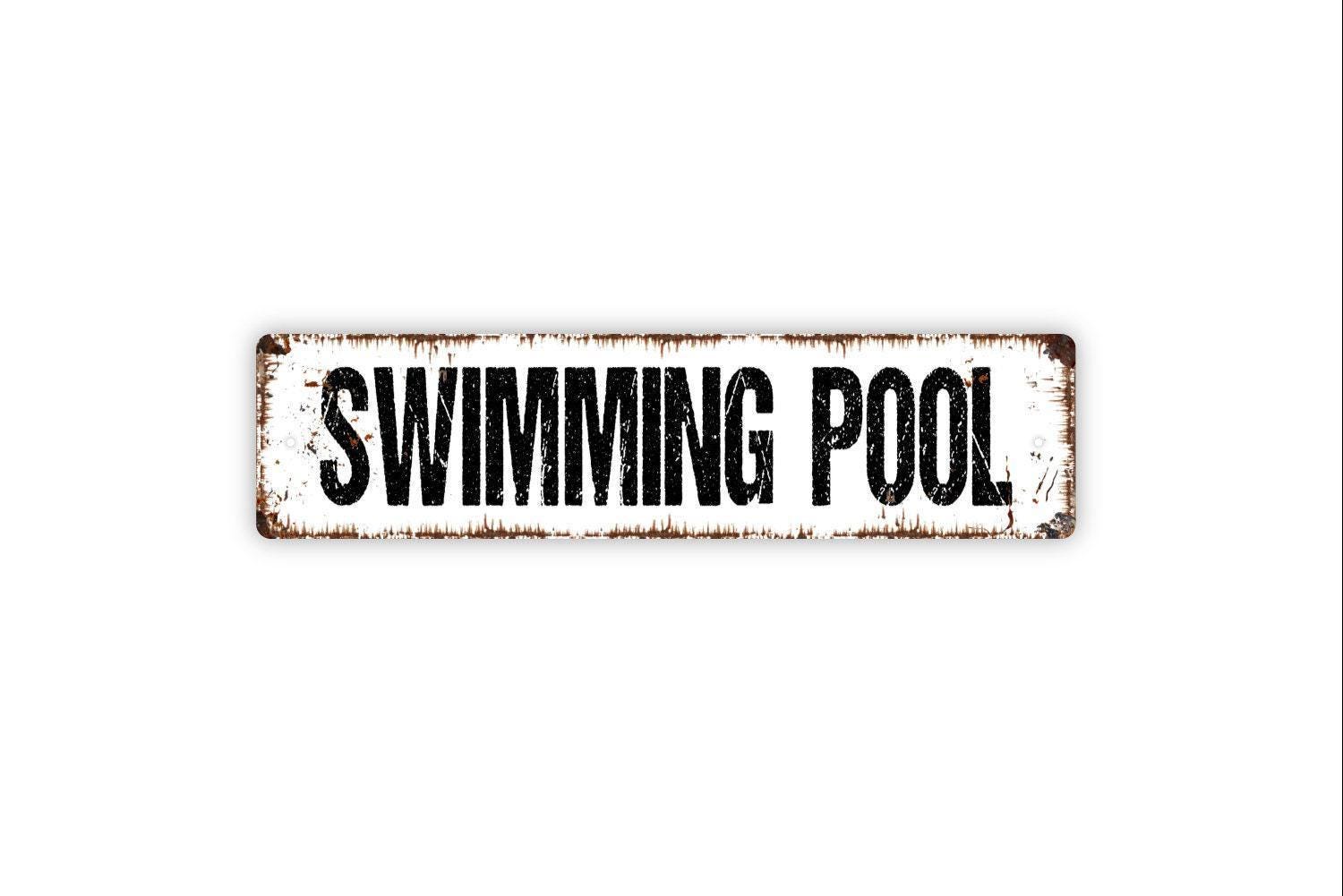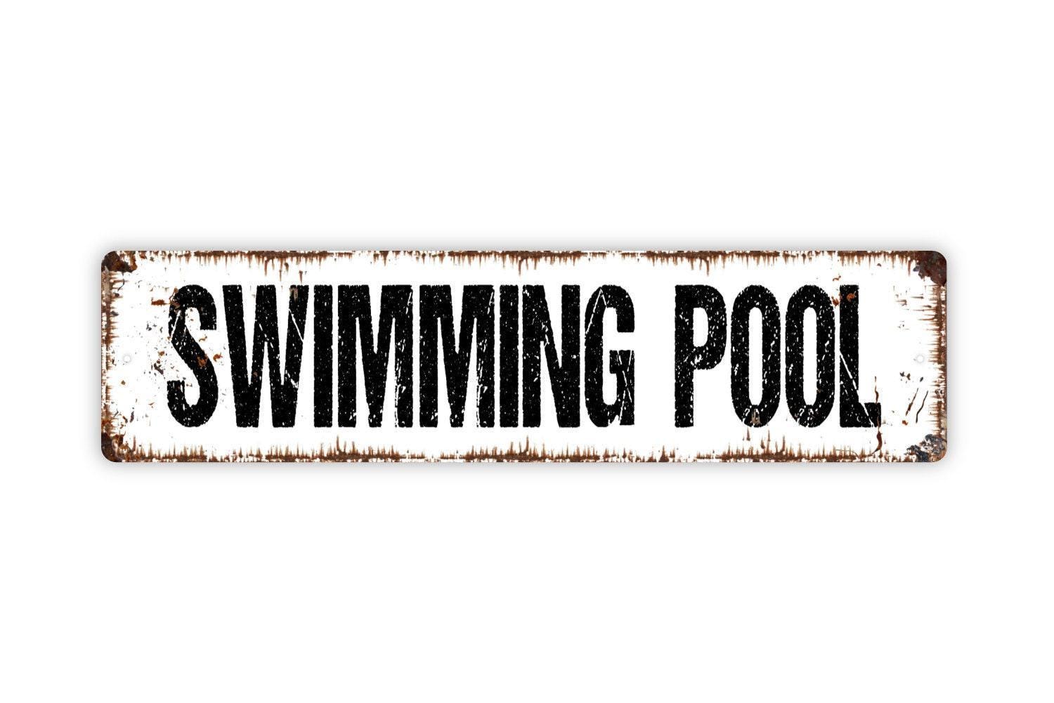 Swimming Pool Sign - Pool House Towels Bath Backyard Patio Paradise Swim Dive Bar Rustic Street Metal Sign or Door Name Plate Plaque