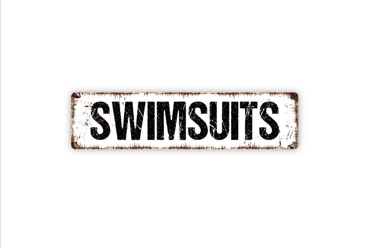 Swimsuits Sign - Swimsuit Swimming Pool Shower Bathroom Store Shower House Vinyl Sticker Or Street Metal Sign or Door Name Plate Plaque