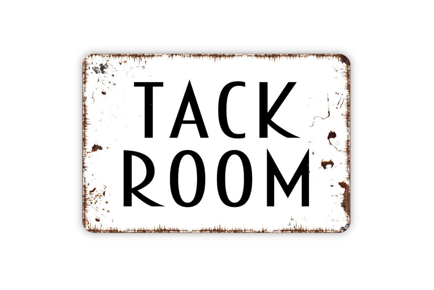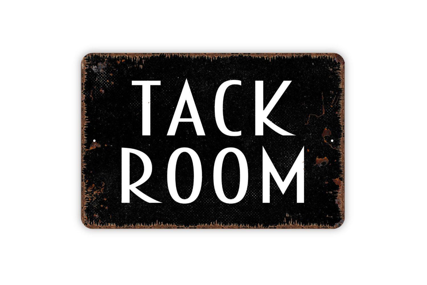 Tack Room Sign | Rustic Equestrian Horse Barn Wall Decor | Farmhouse Stable Riding Gear Storage Wall Art | Metal Sign or Vinyl Sticker