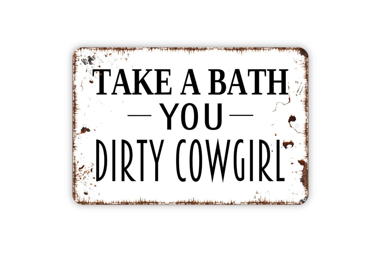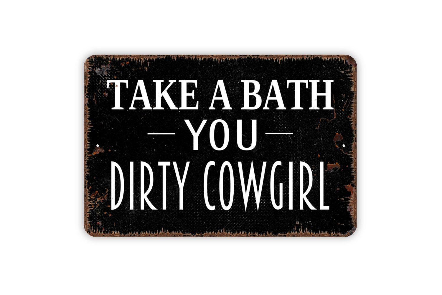 Take A Bath You Dirty Cowgirl Sign | Funny Western Bathroom Wall Decor | Rustic Farmhouse Wall Sign | Metal Sign or Vinyl Sticker
