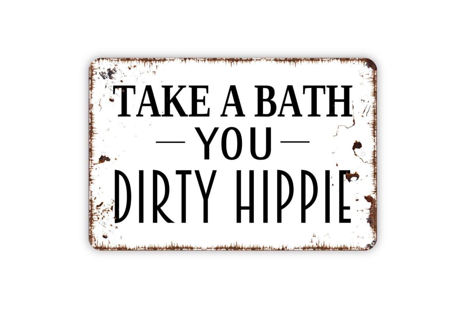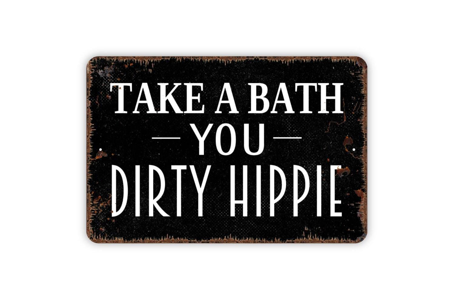 Take A Bath You Dirty Hippie Sign - Funny Bathroom Indoor or Outdoor Wall Art