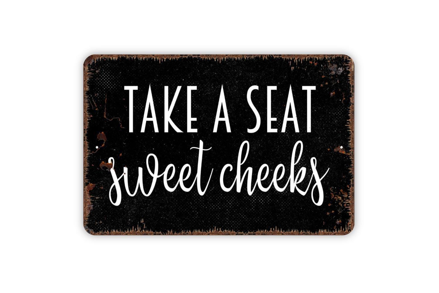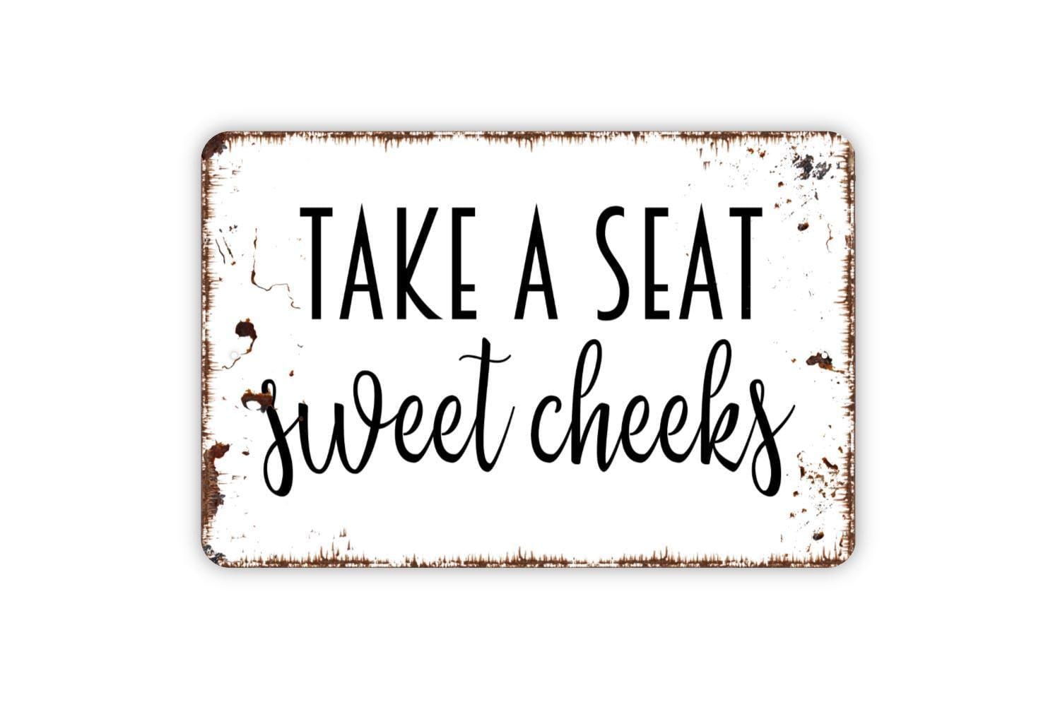 Take A Seat Sweet Cheeks Sign - Funny Pun Bathroom Restroom Over The Toilet Metal Indoor or Outdoor Wall Art