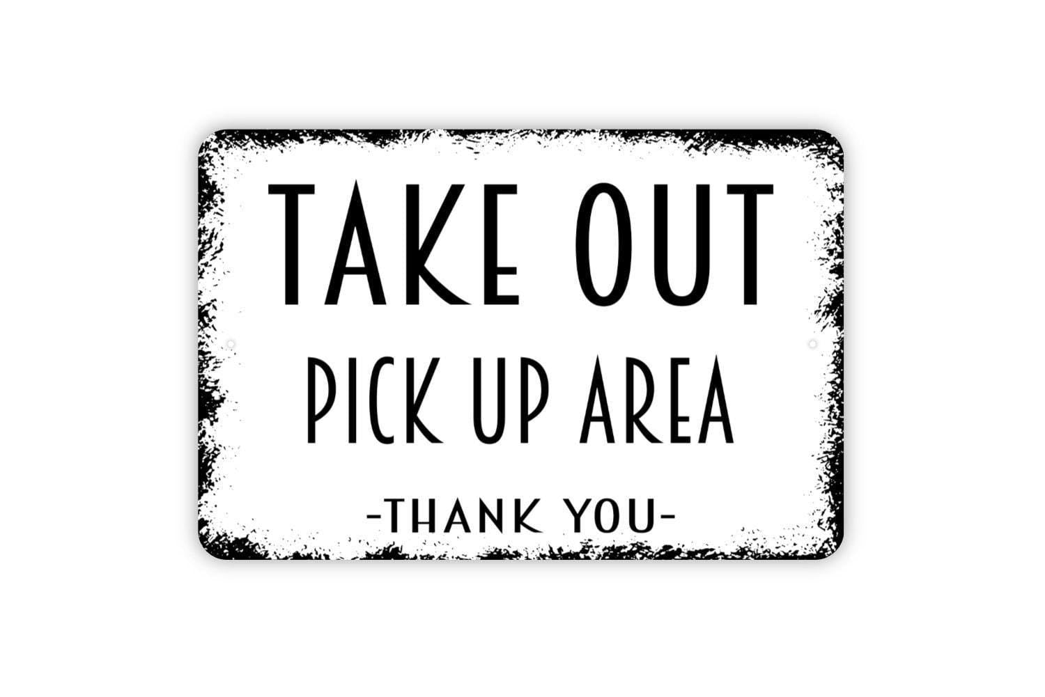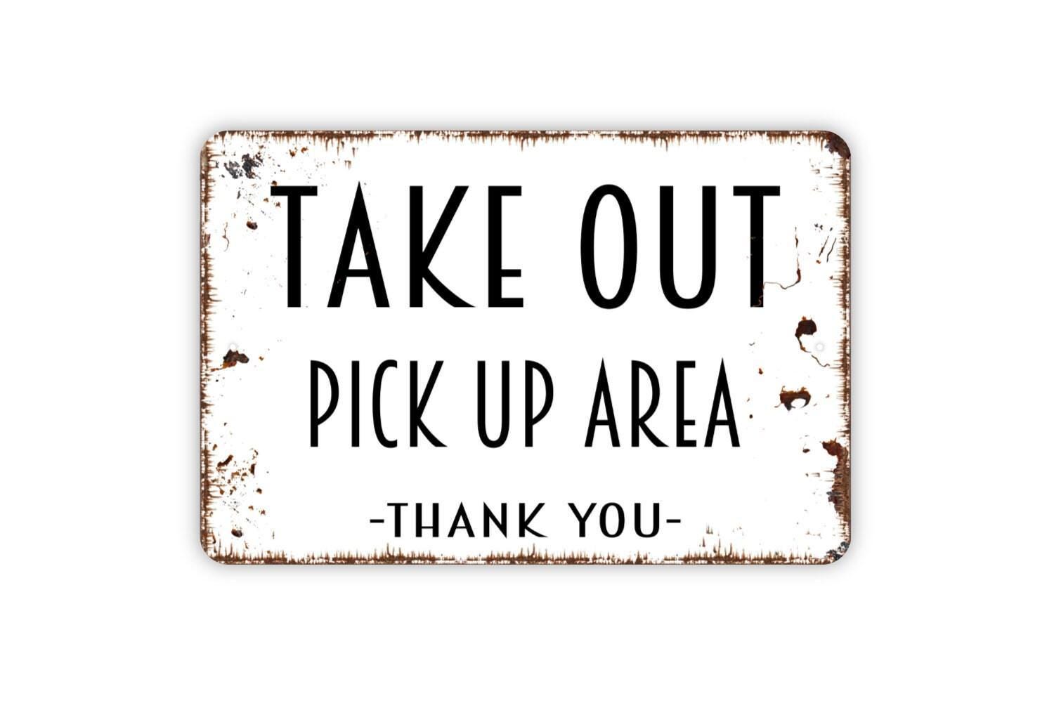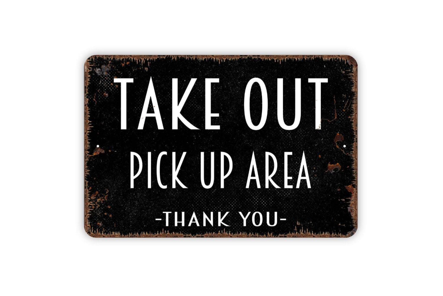 Take Out Pick Up Area Thank You Sign - Custom Restaurant Carry Out Farmhouse Kitchen Wall Metal Sign Art Indoor Or Outdoor
