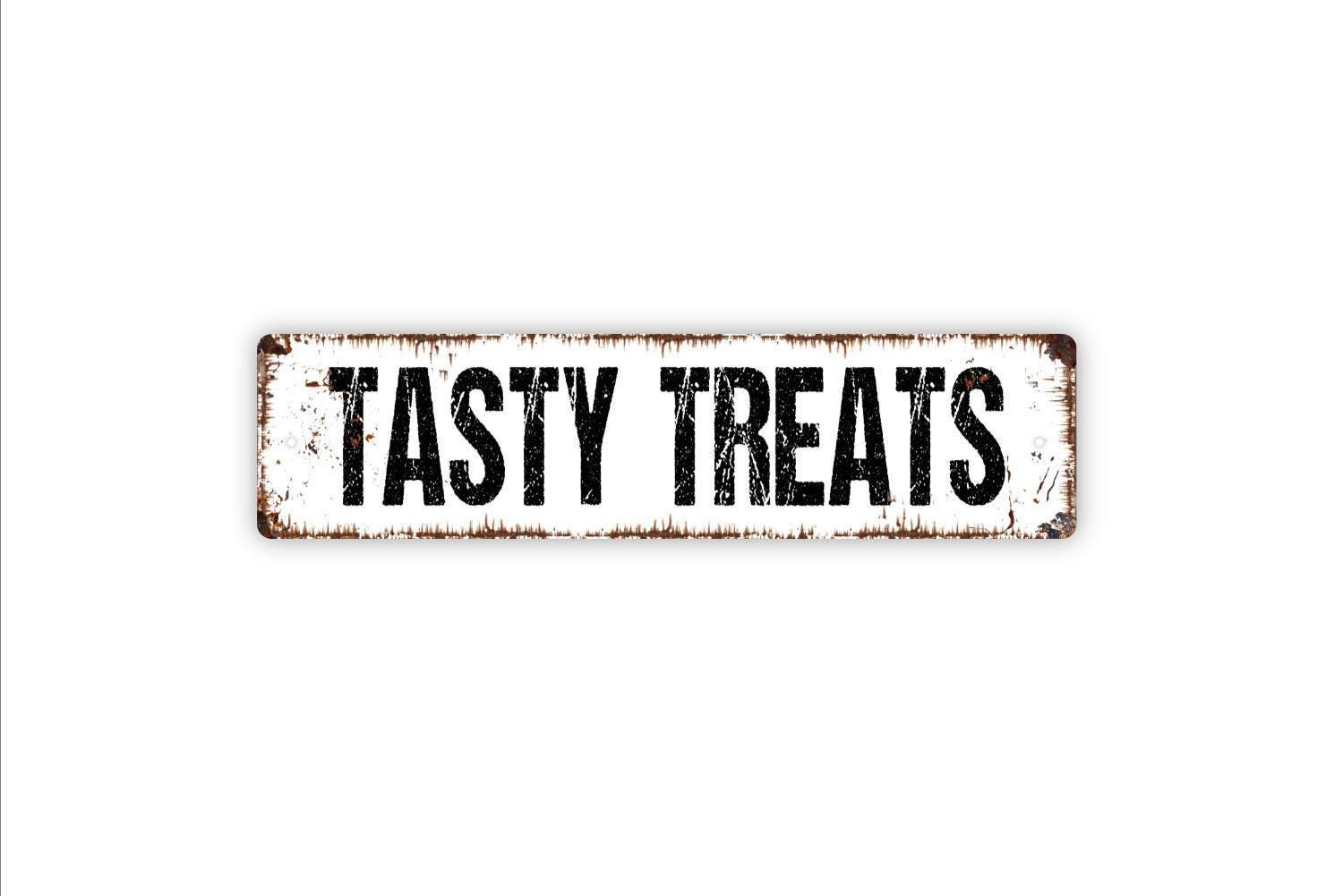 Tasty Treats Sign | Kitchen, Bakery, or Dessert Bar Metal Sign or Vinyl Sticker | Rustic Home, Party, or Candy Shop Wall Decor