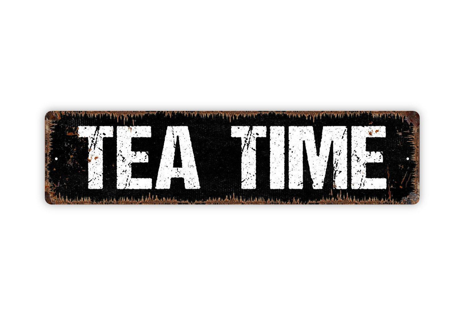 Tea Time Sign – Kitchen Wall Decor – Rustic Farmhouse Tea Bar Sign – Dining Room or Cafe Wall Art – Metal Sign or Vinyl Sticker