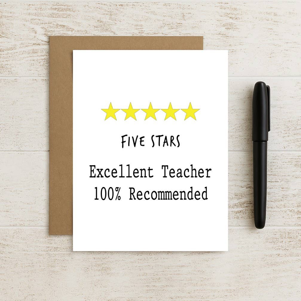Teacher Thank You Card – Five Stars Excellent Teacher – 100%